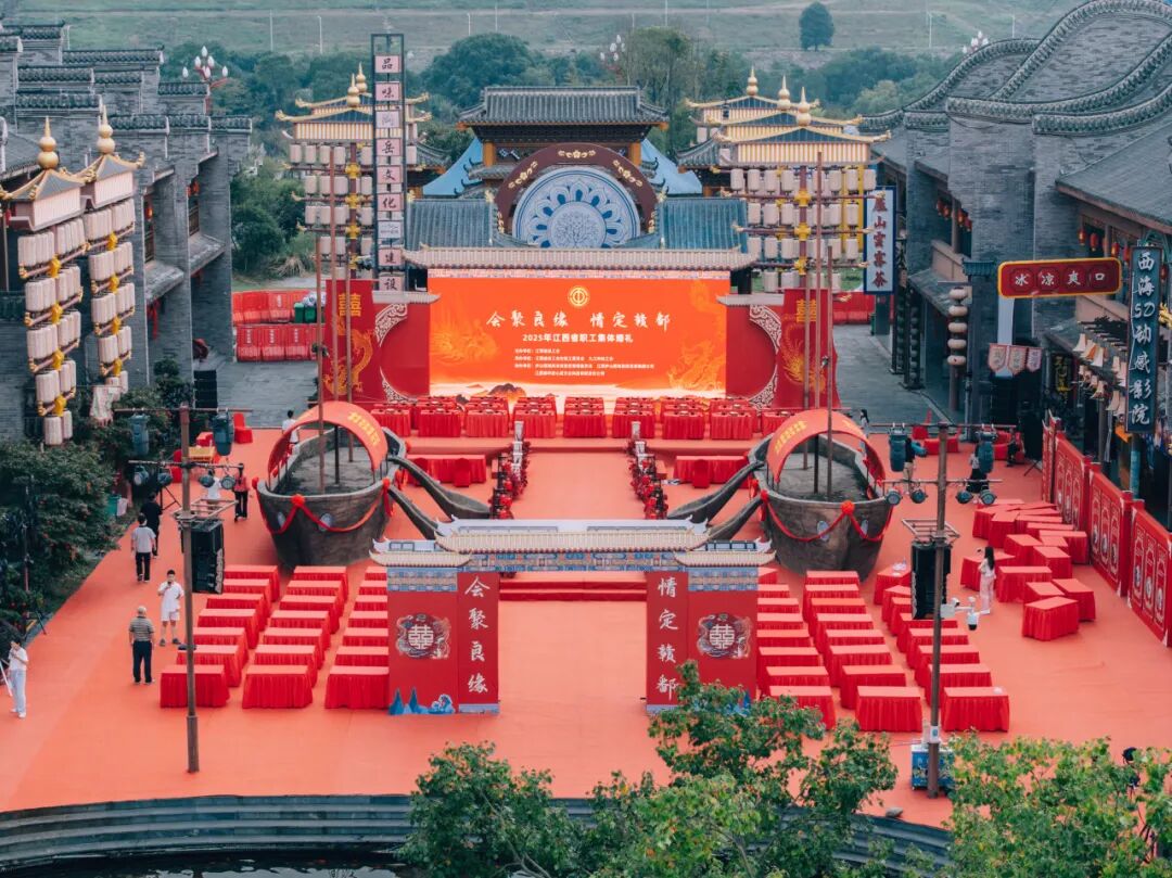 九江新闻网讯 10月19日上午,“会聚良缘 情定赣鄱”2025年江西省职工集体婚礼在九江庐山西海柘林古镇启幕。本次集体婚礼由江西省总工会主办,江西省总工会女职工委员会、九江市总工会承办,庐山西海风景名胜区管理委员会、江西庐山西海旅游发展集团公司、江西都市放心爱文化科技有限责任公司共同协办。