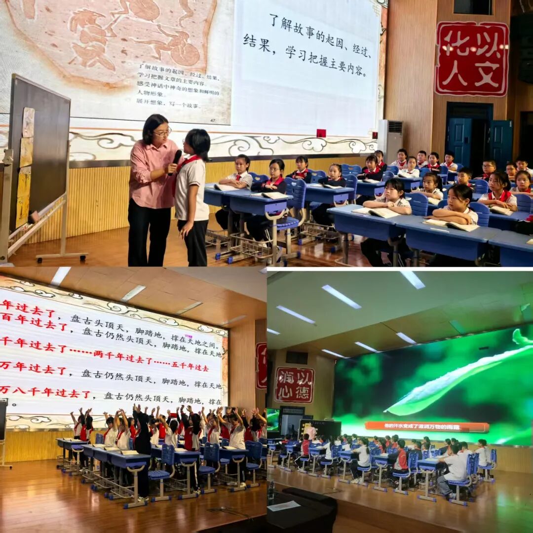 宋亚梅老师执教的《盘古开天地》精准对接单元目标,环节清晰且重点突出:先带学生梳理“起因-经过-结果”,夯实内容把握能力;再用合作朗读品“身化万物”的神奇,最后以句式补写、找身边“盘古”延伸,兼顾能力与情感,课堂扎实有趣。