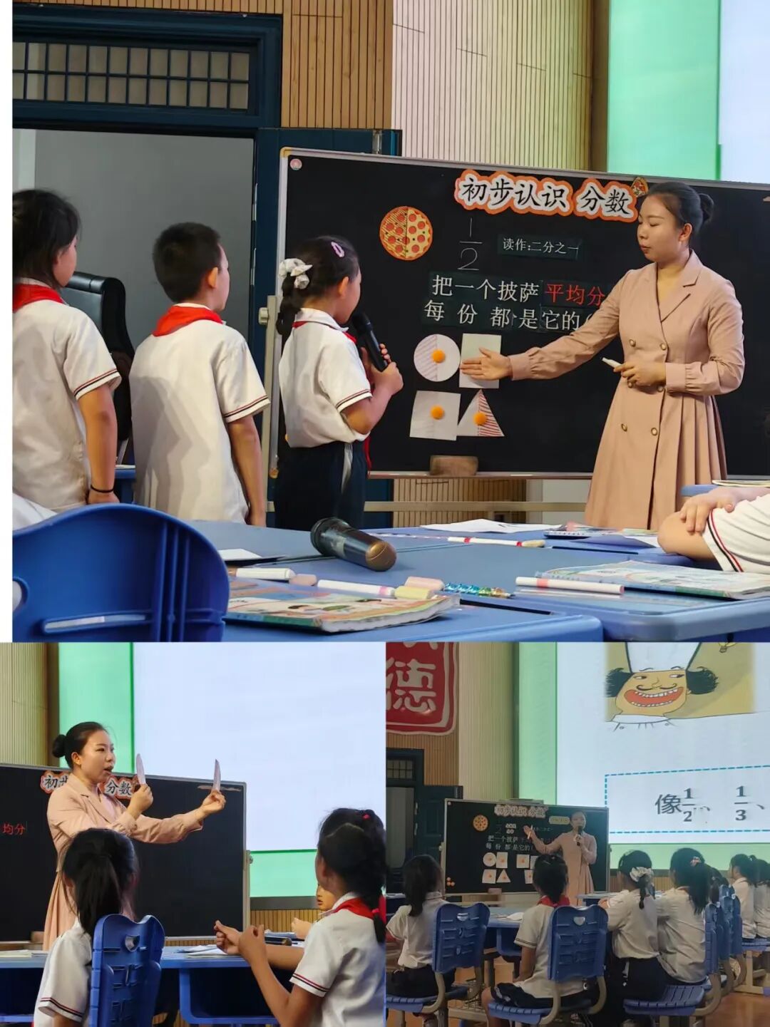 张静老师展示的三年级《初步认识分数》,以“保罗大叔的披萨店”为情境,引导学生探索分数。首先通过分披萨引入二分之一的概念,再组织两次小组合作:一是动手找出不同形状披萨的二分之一,理解等分;二是探索正方形的四分之一及其他分数,加深对分数意义的理解。最后布置基础与探究作业,并介绍分数历史,巩固知识,拓宽学生视野。