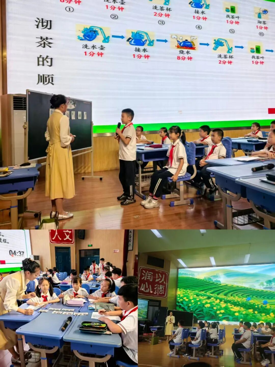叶颖老师执教的四年级数学《沏茶问题》,本节课以“让李阿姨尽快喝到茶”为情境,引导学生探索沏茶问题。先通过说、摆沏茶顺序,让学生感知按序操作合理但不省时;再组织小组合作探究省时方案,对比后发现“烧水时找茶叶、洗茶杯”最合理;最后布置分层作业,并让学生分享生活中合理用时案例,拓宽视野。