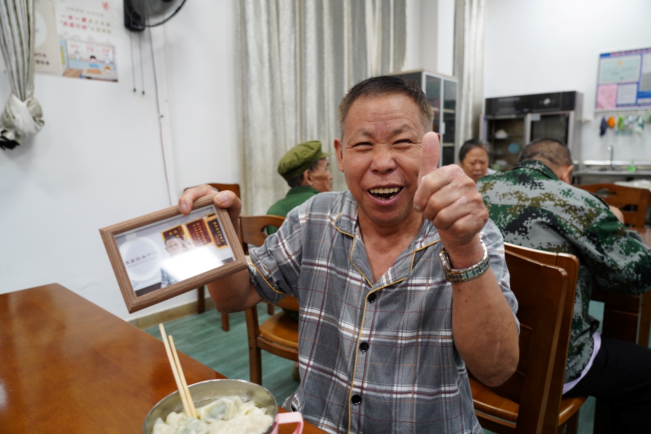 老人们接过照片,爱不释手。恰逢王爷爷女儿来访,志愿者为一家拍下全家福并现场装裱。王爷爷捧着照片感慨说:“这张照片我要摆在床头,想你们的时候看一看,心里就踏实了。”