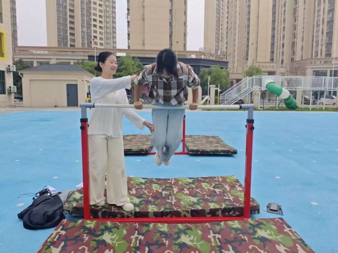 在复盘与交流中,教师们逐步梳理出实用的教学技巧,比如如何根据孩子的身高调整器械适应度,如何用通俗语言拆解复杂动作。随后,大家便着手尝试指导学生,以自己的实践经验为基础,循序渐进地带领孩子们感受单双杠训练的乐趣以及帮助孩子们筑牢动作基础。