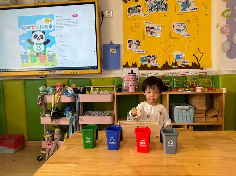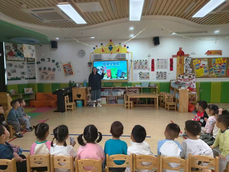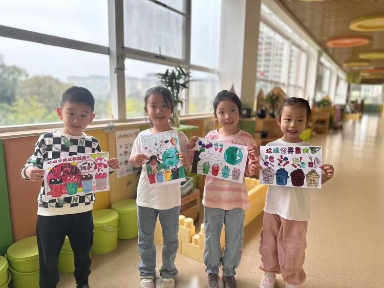 走出幼儿园,孩子们变身“社区宣传小使者”。周末的社区垃圾分类点前,他们手持“电池属于有害垃圾,要放进红色垃圾桶”的小贴士卡片,向居民们认真讲解,稚嫩的声音传递着坚定的环保信念。不仅如此,他们还分组创作宣传海报、编写《垃圾家族的旅行》故事、录制垃圾分类儿歌视频,让绿色理念在幼儿园里处处可见、时时可闻。