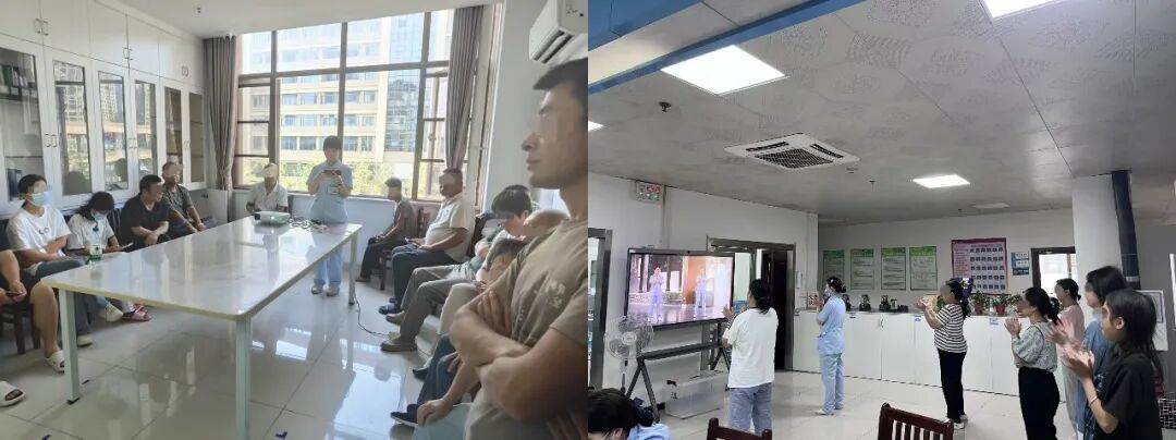 在护士长的带领下,全体医护人员与患者一同来到阳光明媚的休息区,练习专为肾病患者改良的“八段锦护肾操”。医护人员亲身示范,与患者共同锻炼,不仅传授了科学的康复方法,更用行动鼓励患者树立战胜疾病的信心,以积极、昂扬的姿态面对生活。