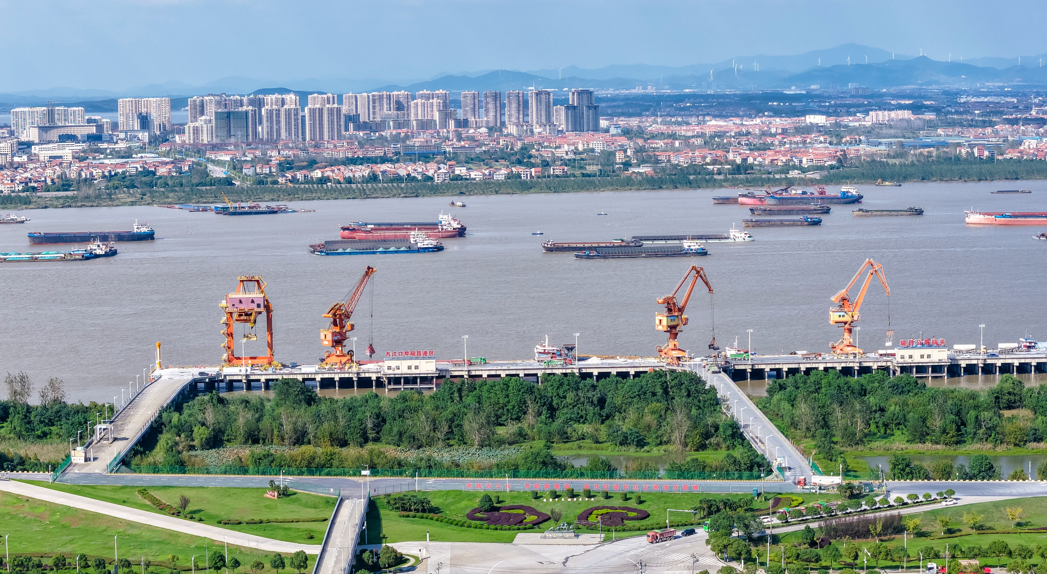 10月22日,九江港瑞昌港区公用码头装卸作业繁忙。瑞昌港区公用码头不断提升装卸效率,在保障安全前提下全力生产,确保辖区企业原材料供应充足、产品运输畅通。(魏东升 九江日报全媒记者 张驰 摄)