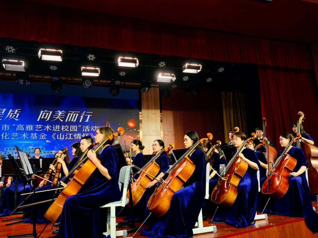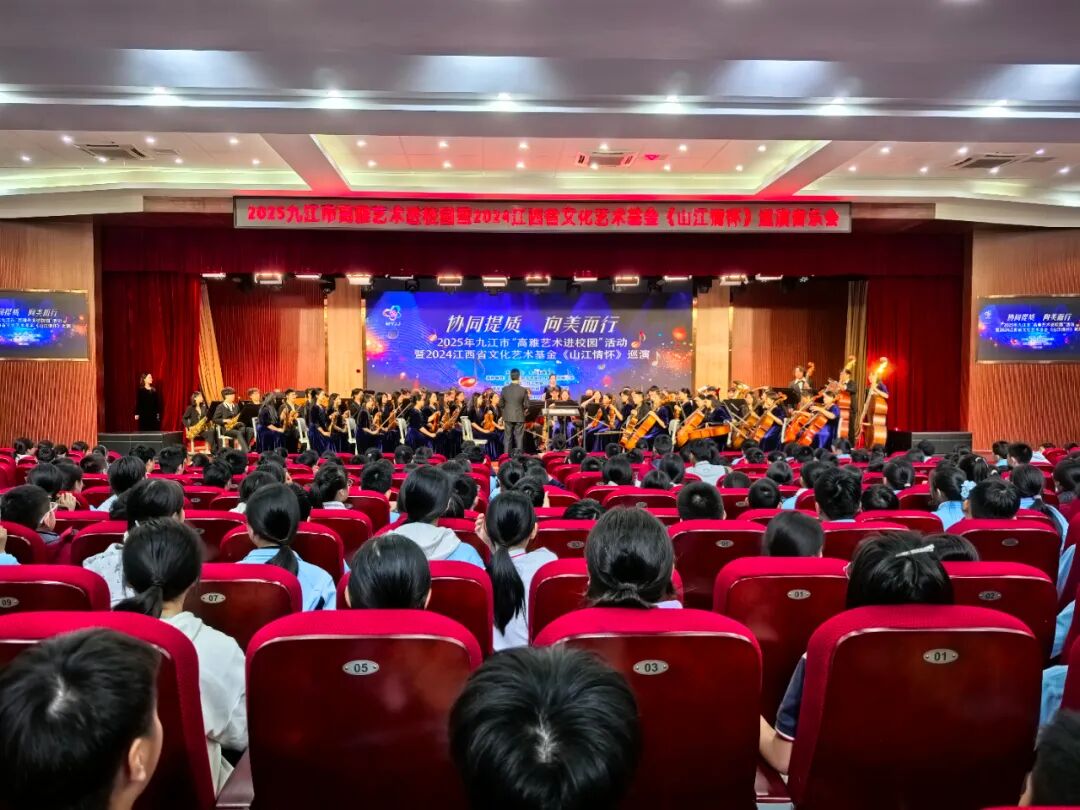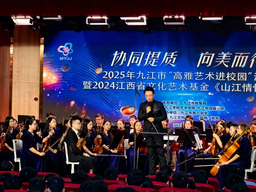 九江新闻网讯(李悦 罗萍)为扎实推进美育浸润行动落地见效,充分发挥美育在提升学生审美素养、陶冶情操、温润心灵、激发创新创造活力的重要作用,10月22日,由市教育局、九江学院艺术学院主办的2025年九江市“高雅艺术进校园”活动暨2024江西省文化艺术基金《山江情怀》专场演出在九江六中进行,九江六中校长黄晓葵和500余名师生观看演出。