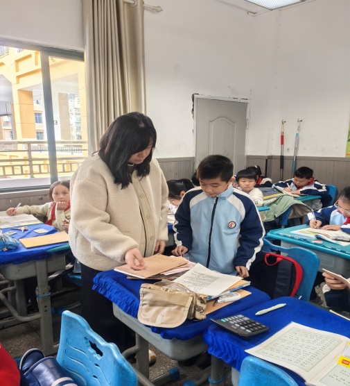 在检查现场,一组深入班级,重点排查是否存在学校未备案、教师私自推荐或强制征订的违规教辅材料,切实守护学生课业负担“红线”。二组聚焦教师教学用书管理,深入教师办公室开展检查,一方面核查教师日常教学用书,严防不合规材料影响教学质量;另一方面,重点检查教师备课所需教辅材料是否按规定张贴“教师用书”专属标签,确保教师用书与学生教辅严格区分,从源头杜绝教师用书流入学生群体、变相增加学生负担的问题。