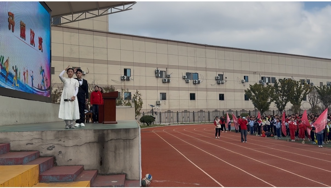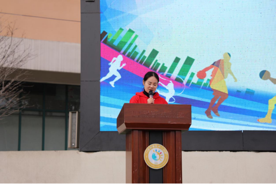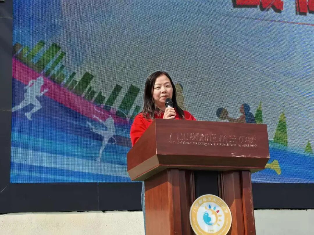 副校长贺璇首先致辞,她对全体运动员提出了殷切期望,鼓励他们奋勇拼搏,争取在运动会上再创优异成绩。