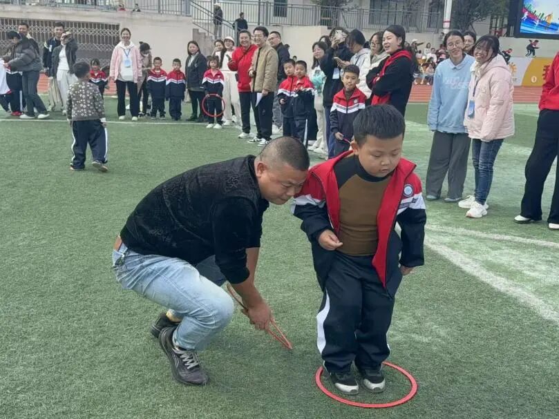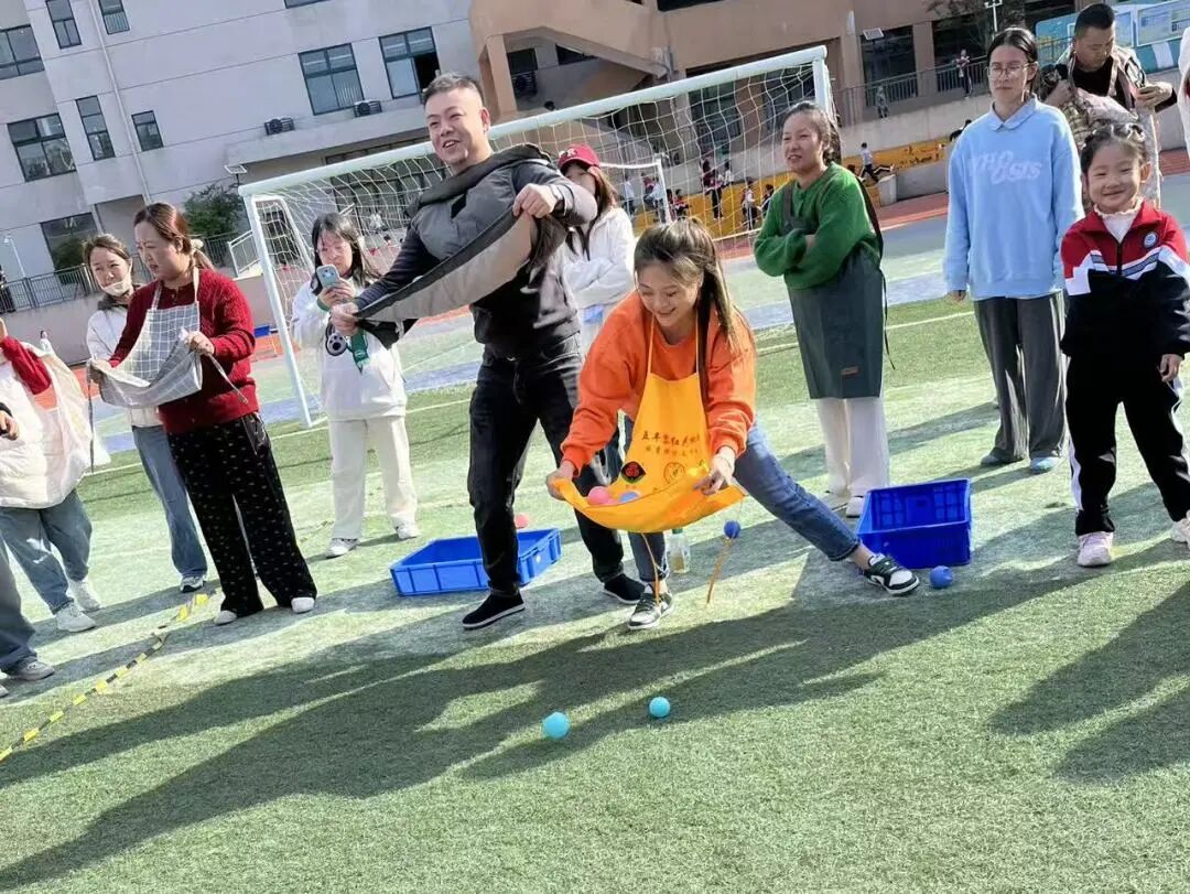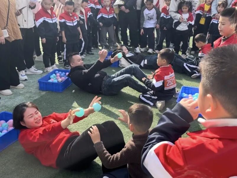 针对一年级孩子的特点,本次趣味运动会开设了四项趣味项目:妙趣横生的 “兜兜乐”、考验协调的 “仰卧起坐传球”“小马过河”,以及萌趣十足的 “小猴运西瓜”。孩子们一个个全力以赴、各展所长,脸上洋溢着童真的笑容,整个场地都被欢乐的氛围包裹着。