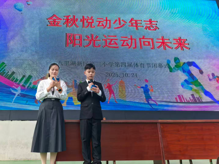 经过三天的激烈角逐,八里湖新区第三小学第四届体育节圆满落下帷幕。在闭幕式上,裁判长、工会主席陈永飞对本次比赛进行了总结,肯定了运动员们的努力和成绩。
