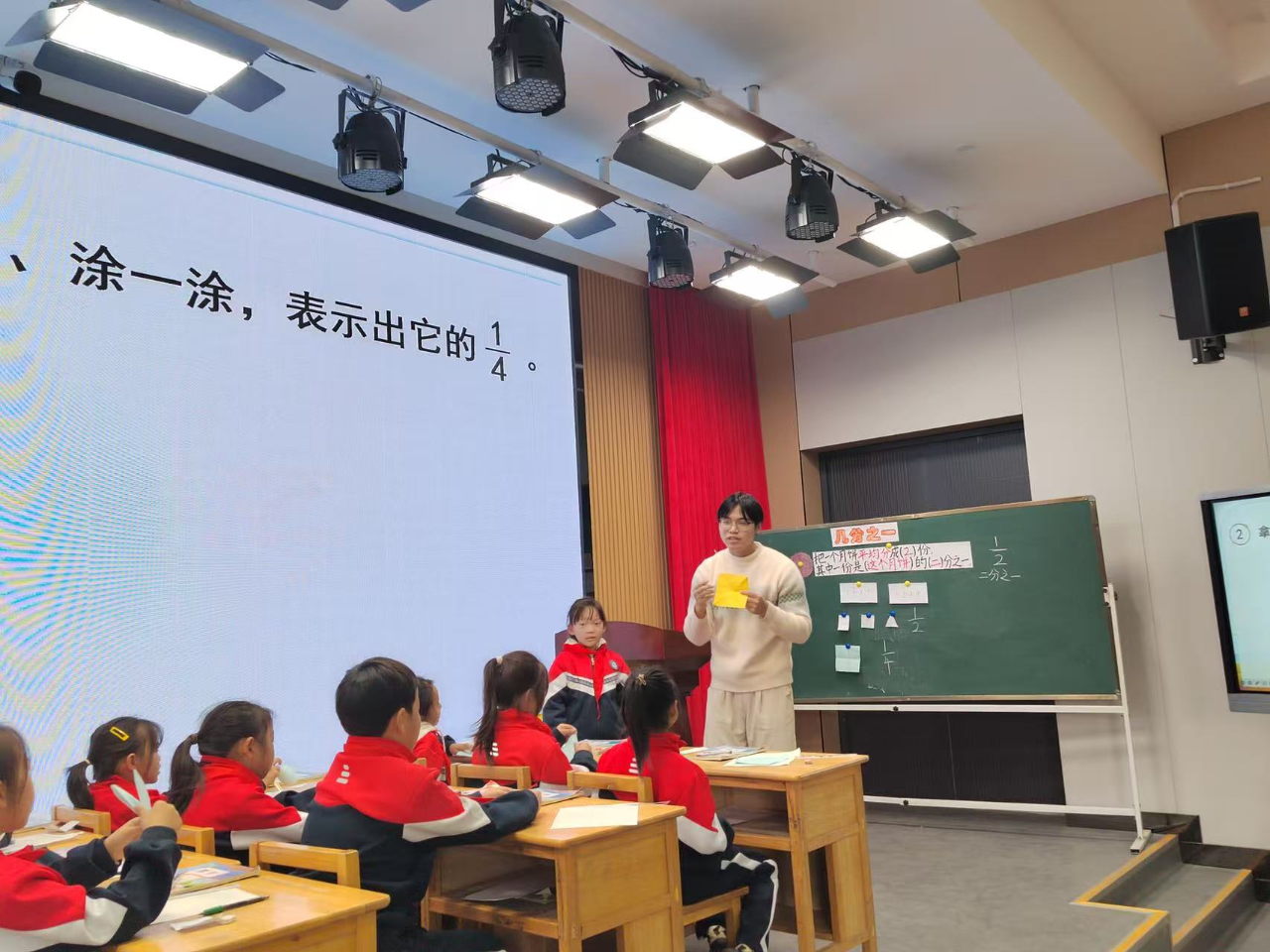 郭智龙老师执教的《几分之一》,紧密围绕平均分的核心概念展开,其最大的亮点在于巧妙运用“折纸”这一操作性活动,将抽象的分数知识转化为学生可触摸、可感知的体验。整堂课学生参与度高,概念建立清晰。
