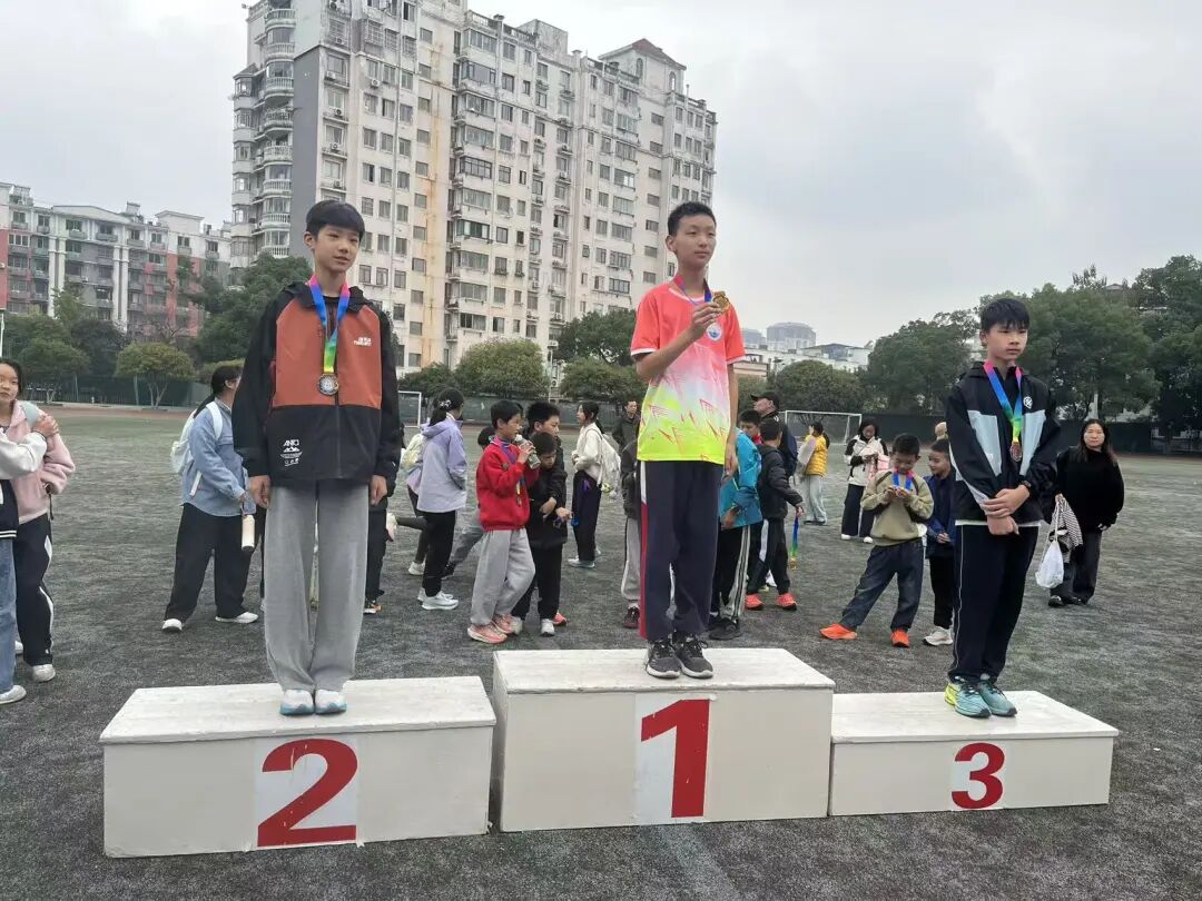 赛场上,学校运动员的表现亮点纷呈。在竞争激烈的男子400米决赛中,浔东选手郭子睿、段隆宇、江海峰展现出绝对优势,一举包揽该项目金、银、铜牌,用实力诠释了团队的硬核实力;接力项目中,男子4×100米接力队默契配合、奋力冲刺,最终夺得第二名,女子4×100米接力队也不甘示弱,凭借稳定发挥拿下第三名,充分展现了团队协作的强大力量。