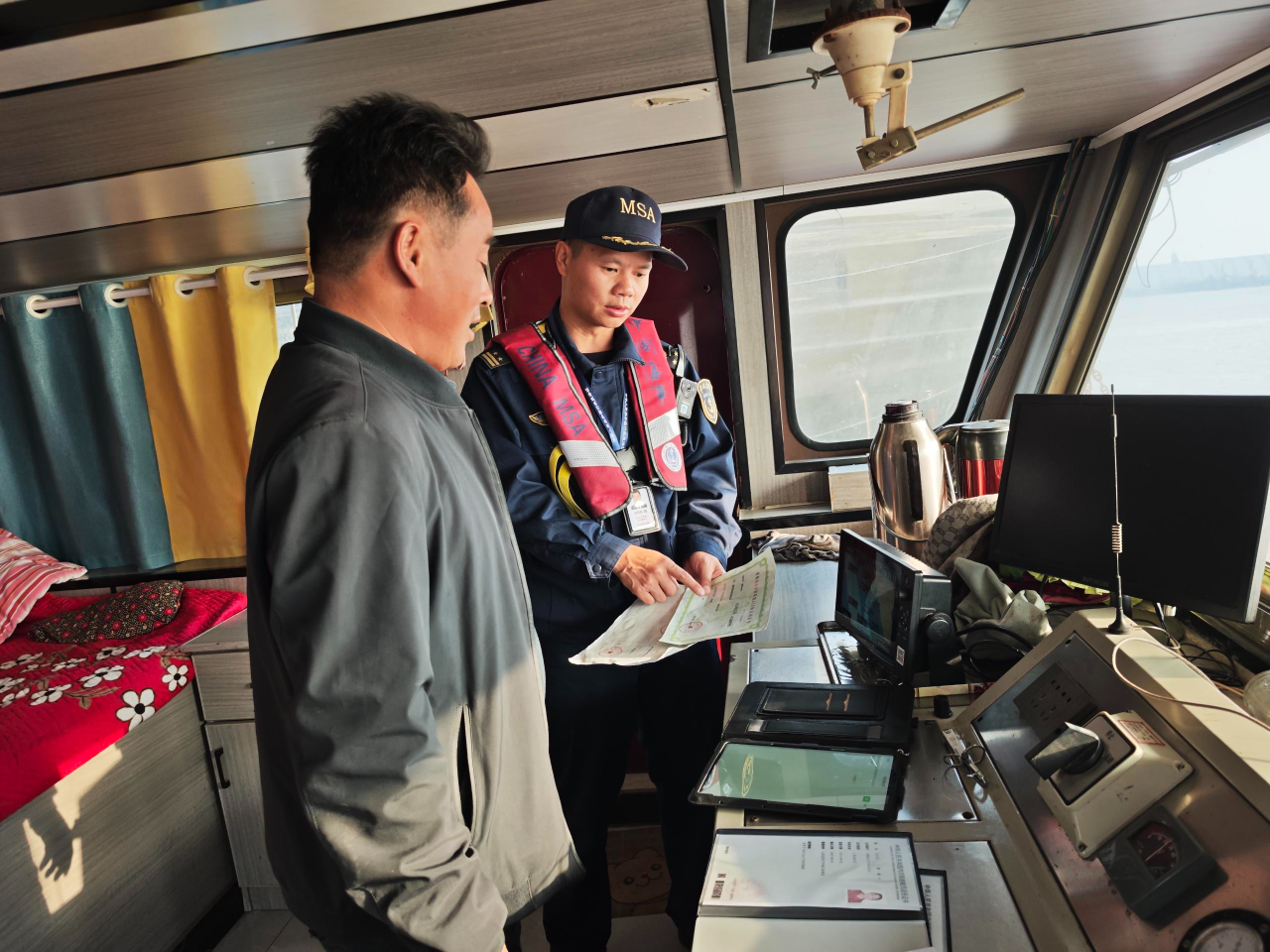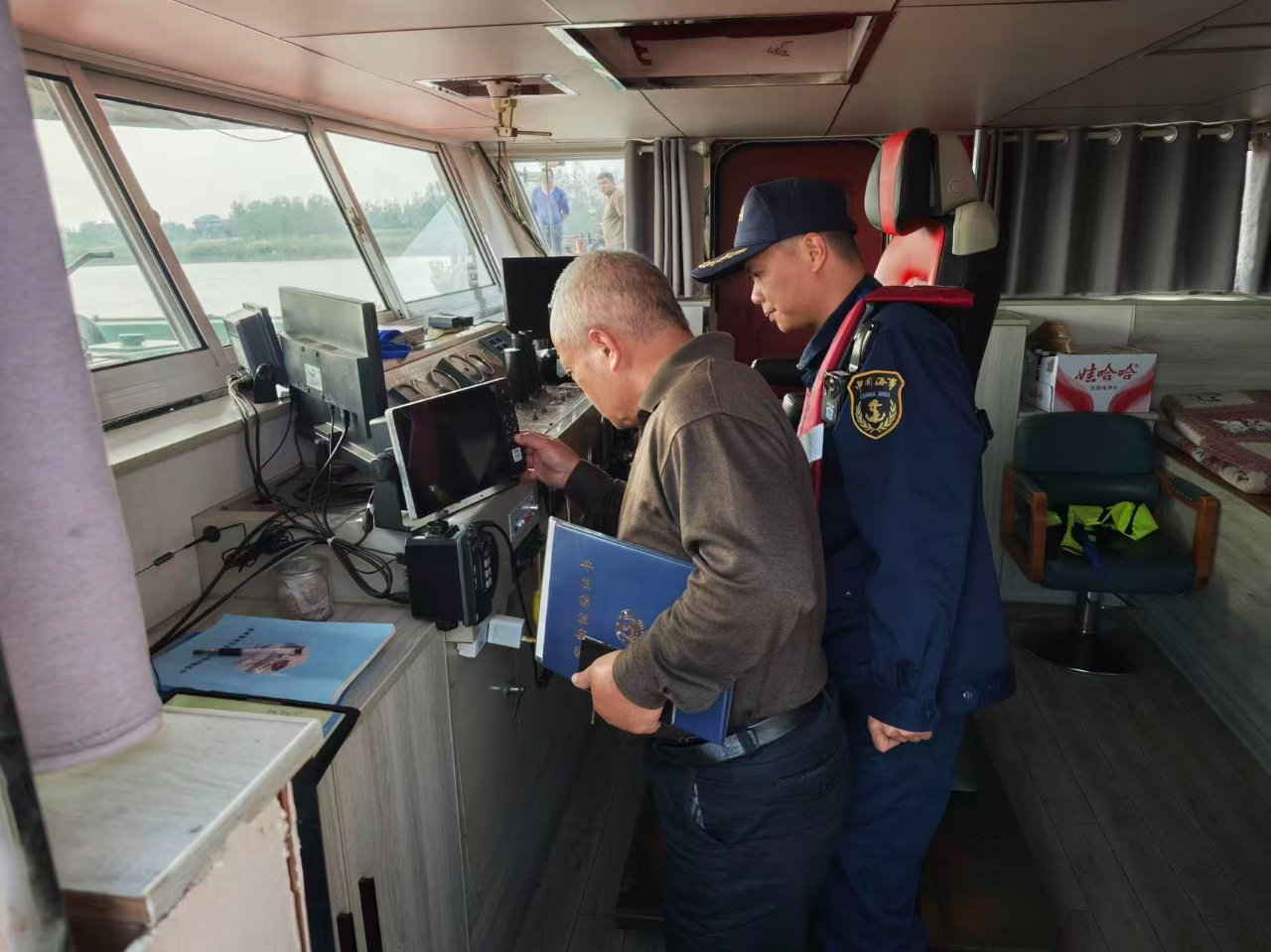 检查中,执法人员向船方宣贯相关法规,讲解“一船多码”、故意关闭设备等行为的危害性,督促其加强设备日常维护。