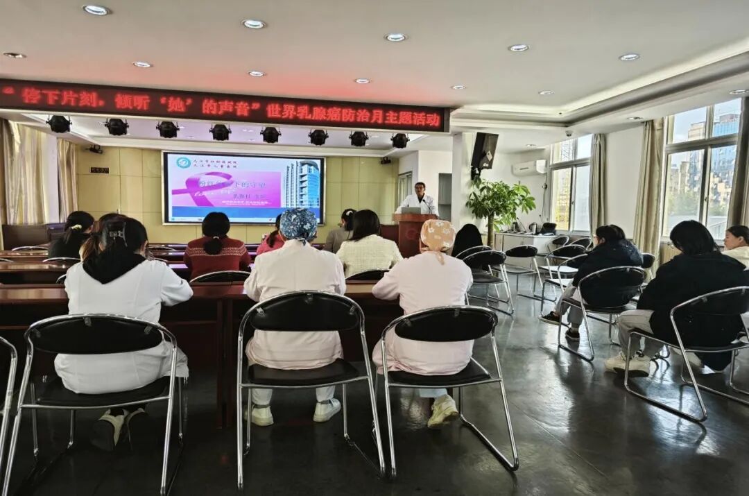 九江新闻网讯 金秋十月,我们迎来了“世界乳腺癌防治月”。在以“粉红丝带”为标志的全球性健康倡议中,乳腺癌防治再次成为社会关注的焦点。为增强全院职工对乳腺健康的重视,10月22日下午,九江市妇幼保健院乳腺科与工会联合举办了以《粉红丝带下的守望》为主题的健康讲座及免费筛查活动。