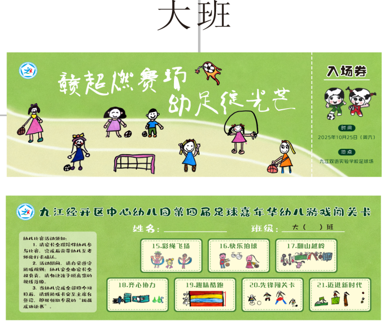 孩子们以“赛事共创者”身份,全程参与邀请函创意绘制、闯关项目卡逻辑设计,用图形标注运球路线、用符号明确游戏规则,在实践中理解赛事流程与足球运动核心要素,提前构建责任意识与创新思维。