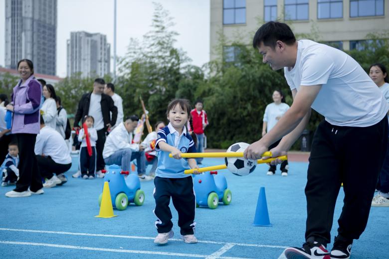 家长以“成长伙伴”全程陪伴,与孩子深度融入各环节。开场鼓乐铿锵奏响序曲,小小运动员列队入场满含坚毅;园长以“足球润心、运动铸魂”阐释四年深耕足球、以球育德健体的初心;幼儿在家长注视下宣誓践行体育精神,裁判员适配幼儿特点解读规则,教师舞蹈点燃全场。
