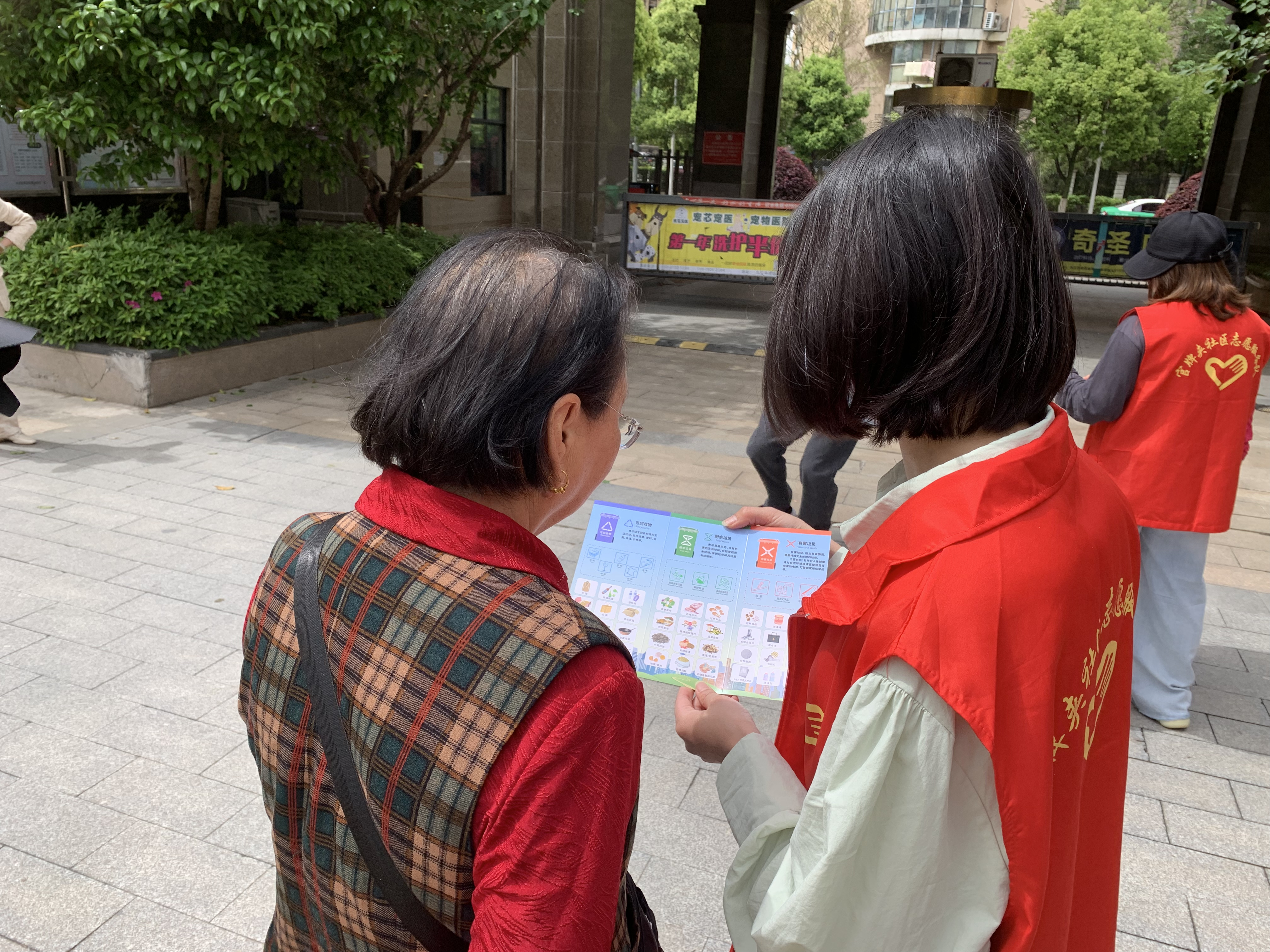 活动中,垃圾分类宣传员通过发放宣传单页,向小区居民普及垃圾分类知识。对居民提出的“厨余垃圾如何正确投放”“旧电池属于哪类垃圾”等常见问题,逐一进行耐心解答。