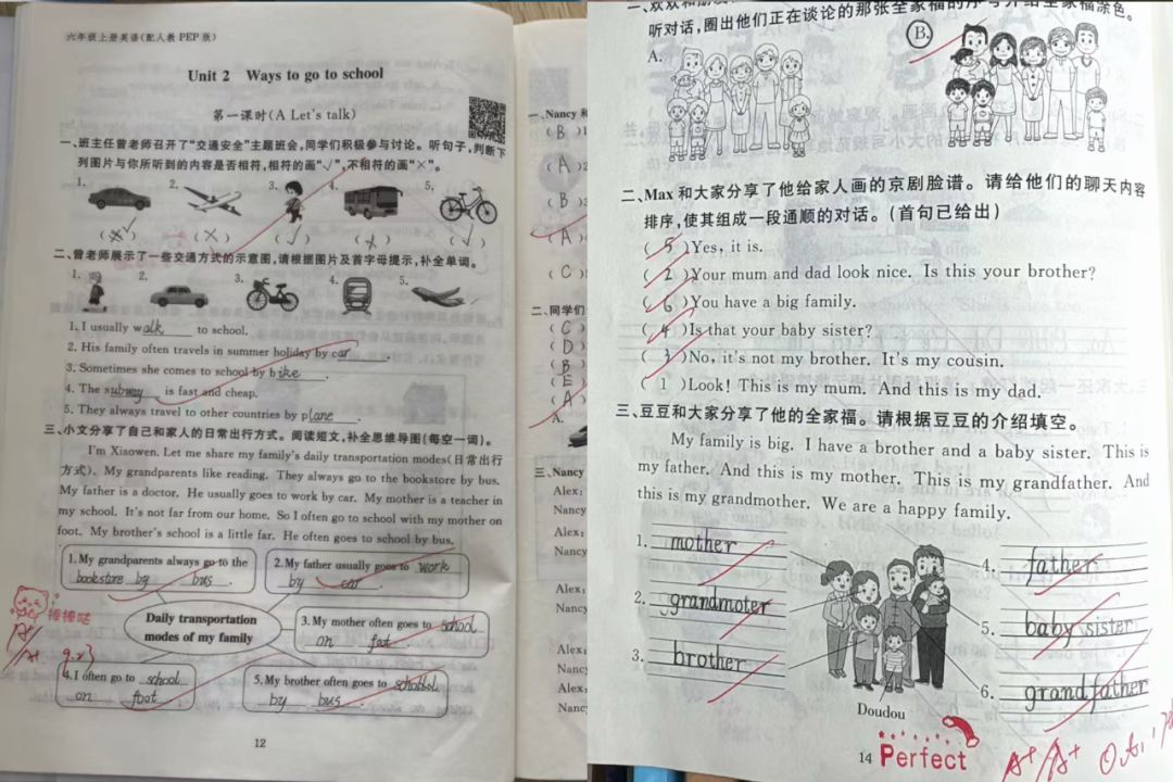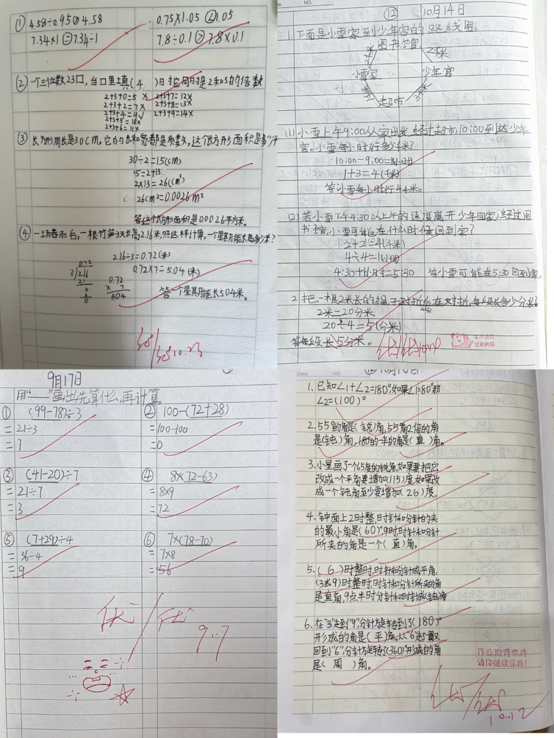 本次检查采取抽查方式,覆盖语文、数学、英语三科,重点从三方面查找亮点、梳理问题:一是作业量把控,看是否符合“双减”要求、做到适量有效,作业设计是否体现梯度;二是学生作业质量,查书写是否工整规范,错误订正是否及时到位;三是教师批改情况,核批改是否及时规范,批语是否突出“过程性鼓励”。