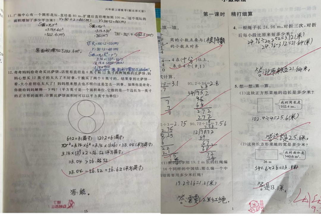 数学作业上,习题排布井然有序,每一道题的解答都是一次思维的锤炼——学生在数字世界中探索,逐步找到通向答案的路径。教师依据教学重点与学生实际,科学设计作业,兼顾基础巩固与拓展提升;批改时严格细致,深入审阅解题思路与步骤,运用多元评价,对错误及时纠偏指导,帮助学生养成严谨的数学思维。