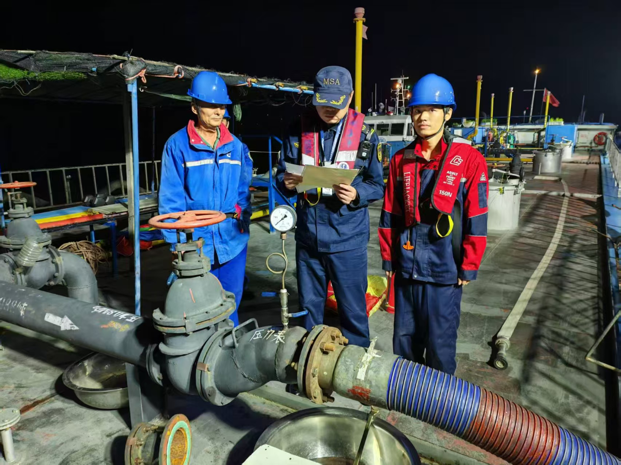 10月27日,执法人员乘“海巡12246”艇前往辖区危险品货物码头对作业中的“建庆油*”轮开展登轮检查。执法人员先是详细检查了船舶防静电装置、围油栏、输油管,仔细查看了消防设备、防火结构、货舱区域、透气系统、人员保护和应急预案,随后重点对船舶进出港电子报告情况、船载危险品货物申报情况、船员配备履职情况等进行核查。检查过程中,执法人员还重点查看了AIS设备、甚高频装置和无线电证书。检查结束后,执法人员着重提出:一是近期恶劣天气频发,时有寒潮大风、强对流天气等,船方要做好相应措施应对恶劣天气;二是即将迎来枯水期,船方要提前做好准备;三是要严格遵守危化品船舶作业规定,同时做好进入封闭场所管理,保障作业安全。