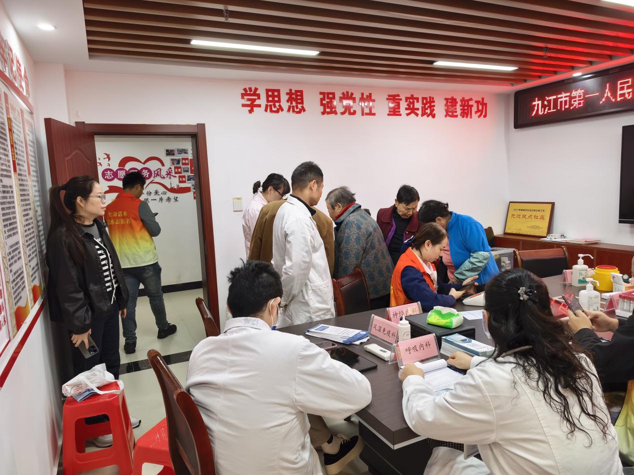 活动现场,邀请九江市第一人民医院泌尿外科、甲状腺外科、风湿免疫科、神经内科、呼吸内科等专家,为现场的老人测量血压、血糖、尿酸,还给大家做了免费的关节彩超、甲状腺彩超等。针对血压偏高或波动较大的老人,医生及时提醒日常注意的事项。义诊结束后,医生们还在耐心倾听每位居民的健康诉求,逐一解答关于疾病预防、日常保健、就医流程等方面的咨询,真正将健康服务送到居民“家门口”。还通过宣传手册等方式进行健康知识宣传,增强广大居民的健康意识。