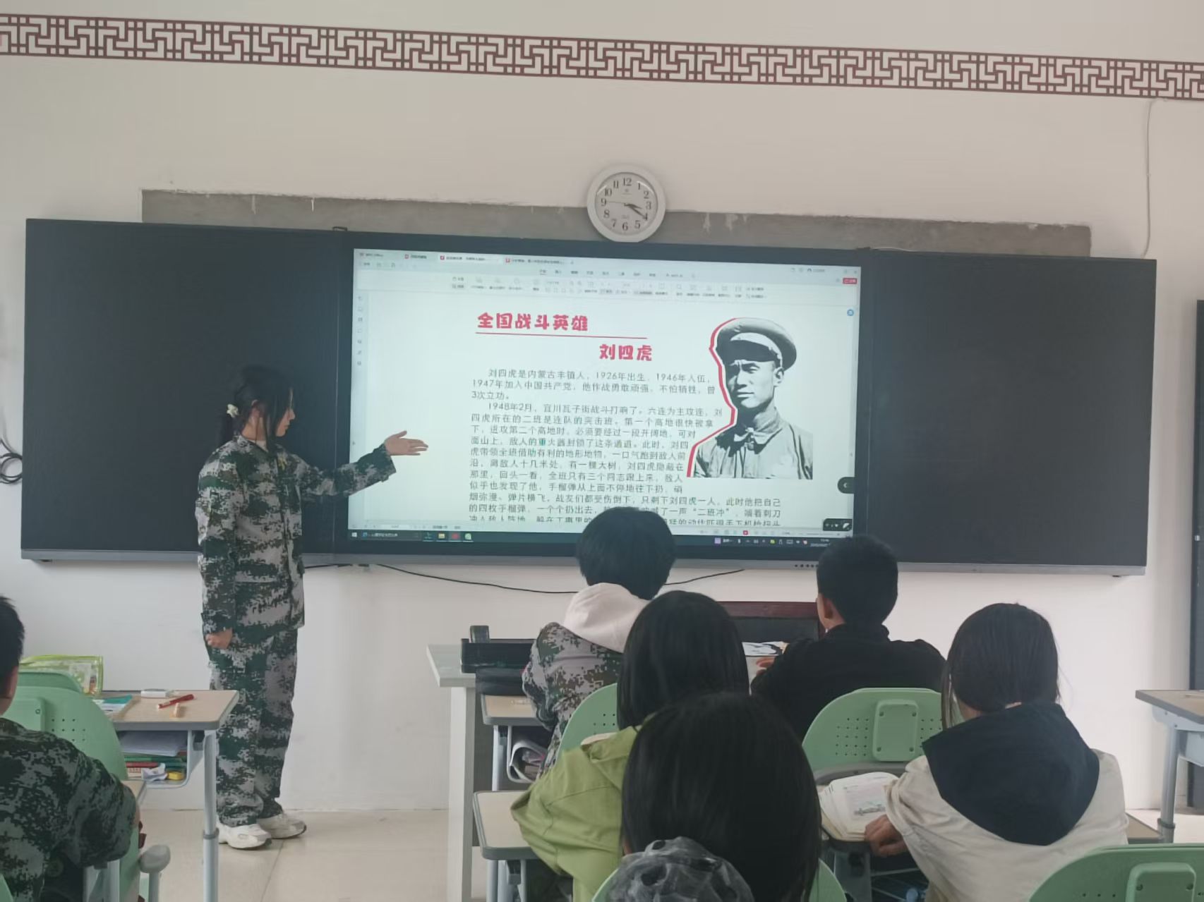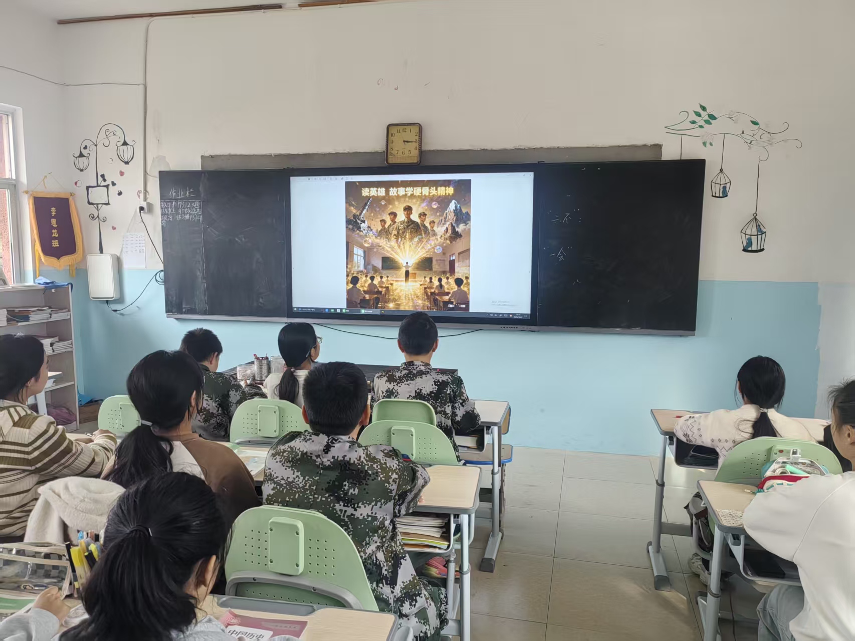 在英雄事迹分享环节,一个个陌生的英雄通过班主任的深情讲述变得可感可知。部分班级还邀请学生代表声情并茂地朗读英雄日记片段,让在场同学仿佛置身于战火纷飞的年代,真切体会英雄们的家国情怀与英雄精神。