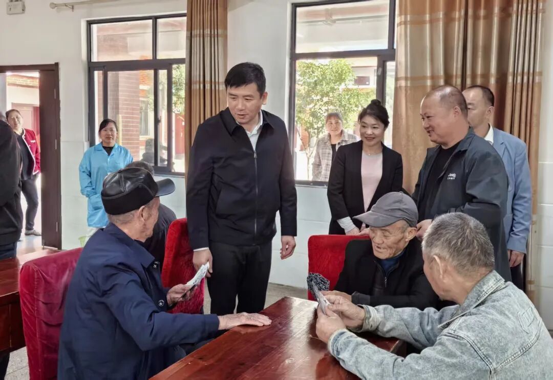 张宇峰来到新宁镇凤口村看望慰问了抗美援朝退伍老兵曹仲徐,耐心倾听老人讲述他曾经的光辉历程,关切询问老人身体健康、家庭生活情况,感谢他曾经为国家民族作出的贡献,嘱咐家属照顾好老人的饮食起居。随后走进新宁区域中心敬老院,实地查看老人们住宿环境和生活配套设施,询问了解老人们日常餐饮供应、医疗保障、文娱活动等情况。他表示,各地各部门要弘扬好尊老爱老的优良传统,切实把老年人的冷暖安危放在心上,不断完善养老服务体系,着力提升养老服务水平,激励社会各方在生活、情感上对老人给予更多的关怀,提供舒适舒心的生活、娱乐环境,在全社会营造尊老、敬老、爱老、助老的浓厚氛围。