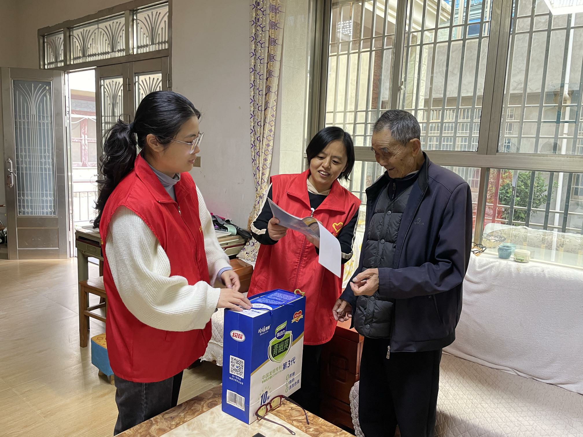 座谈会后,志愿者们兵分多路,开展入户走访慰问活动。针对独居老人群体,志愿者们不仅送去了慰问品,还结合季节特点,重点宣传防诈骗知识和冬季用火用电安全常识。“天冷了用取暖器,一定要远离被褥、衣物这些易燃物,出门前记得断电。”“陌生电话说中奖、要转账,千万别信,及时跟孩子或村里说。”志愿者边叮嘱边检查老人家中电路、燃气设施,排查安全隐患,保障冬季生活安全。