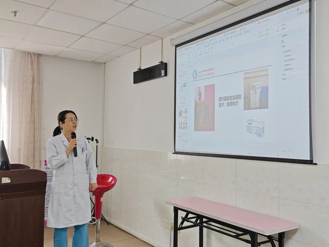 除了暖心的情感交流,盆底防治中心专家为到场的患者及家属们带来了一场生动有趣的科普讲座。针对大家普遍关心的“手术效果能维持多久?”“日常生活中哪些动作要避免?”等问题,专家一一给予了专业、细致的解答,重点强调了术后康复训练,特别是凯格尔运动的重要性,进行了简单的教学互动,确保每位患者都能掌握正确的方法。此外,医护人员还详细讲解了术后不同阶段的注意事项,从饮食、运动到复查时间,事无巨细。