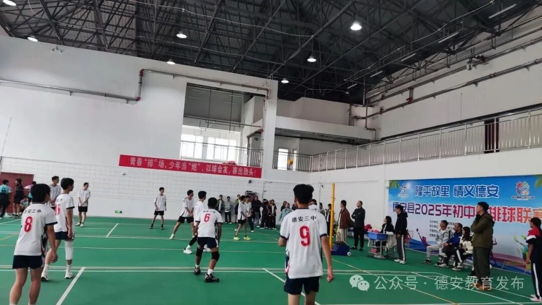 比赛分为初中男子组和女子组两个组别。赛场上,参赛选手们精神抖擞,发球精准有力、传球默契流畅、扣杀果断凌厉、快攻灵活巧妙,每一个技术动作都展现出扎实的功底。选手们秉持“每球必争”的信念,在攻防转换间密切配合、顽强拼搏,在比分交替上升的激烈角逐中,尽显青少年的活力与韧劲。精彩的对决赢得现场观众阵阵掌声,呐喊加油声此起彼伏,热烈的氛围贯穿赛事全程。经过多轮激烈比拼,最终德安二中斩获男子组第一名,德安三中摘得女子组第一名(获奖名单附后)。