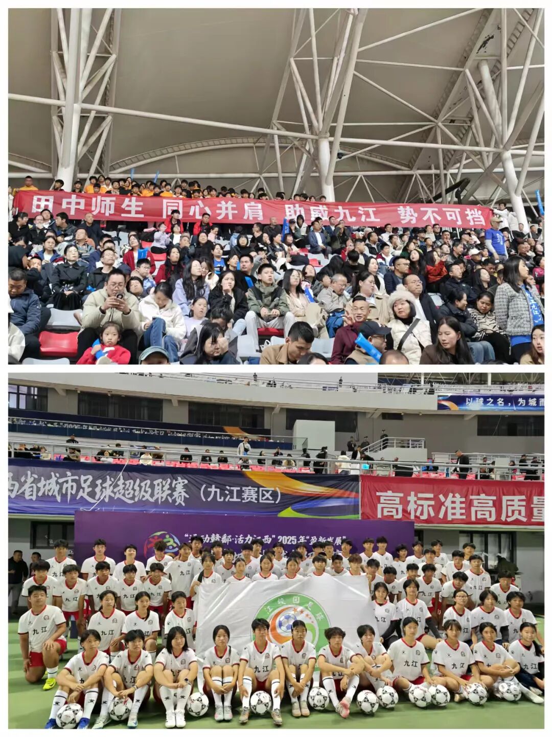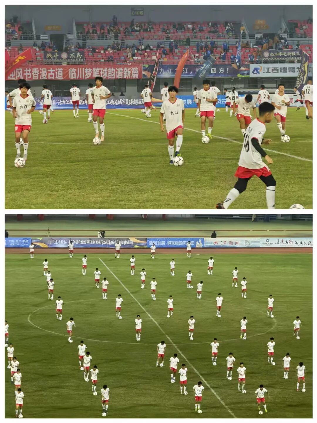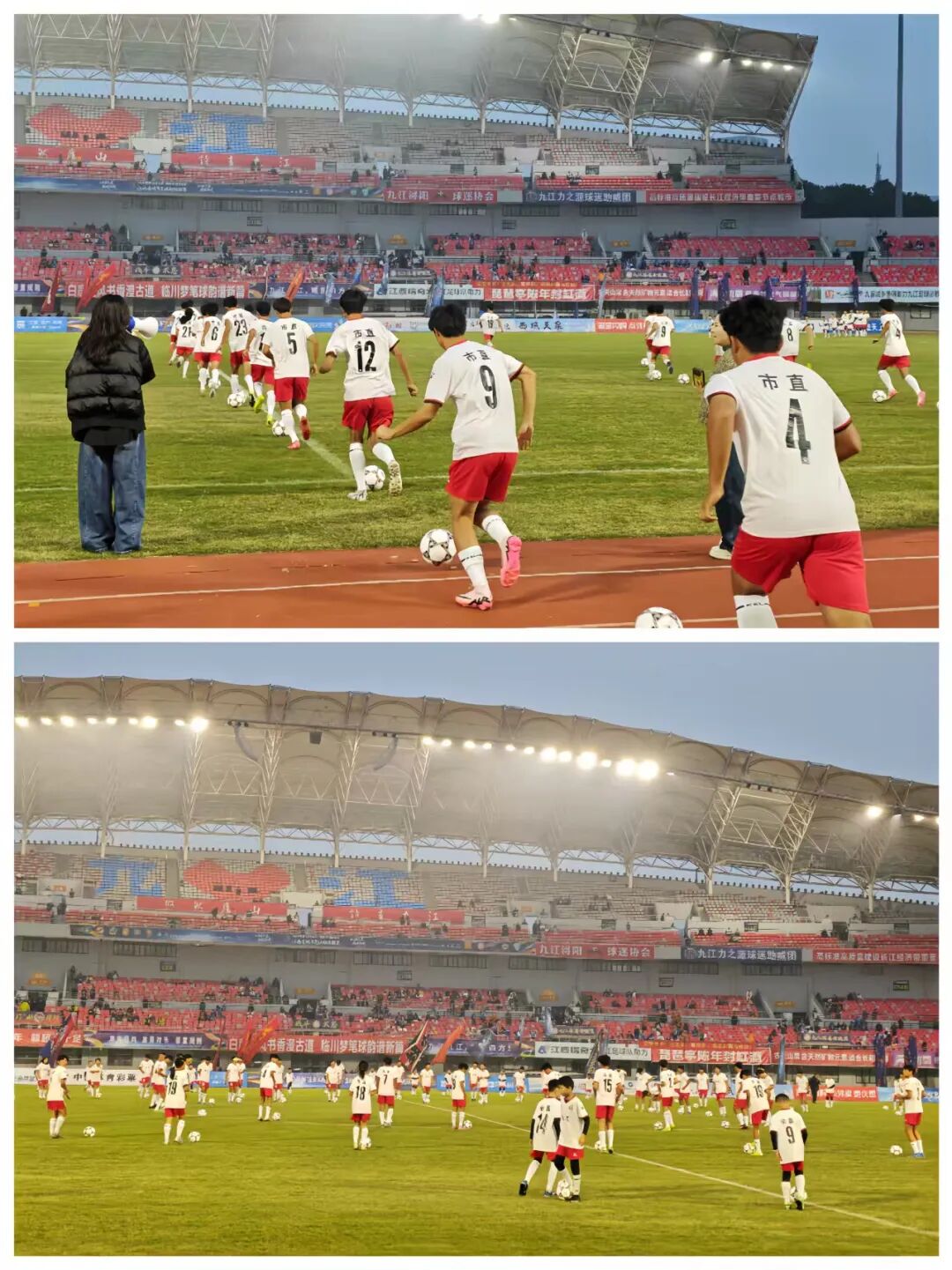 绿茵暖场燃激情,青春逐梦续传承——九江市田家炳实验中学足球生闪耀赣超季军争夺战暖场节目