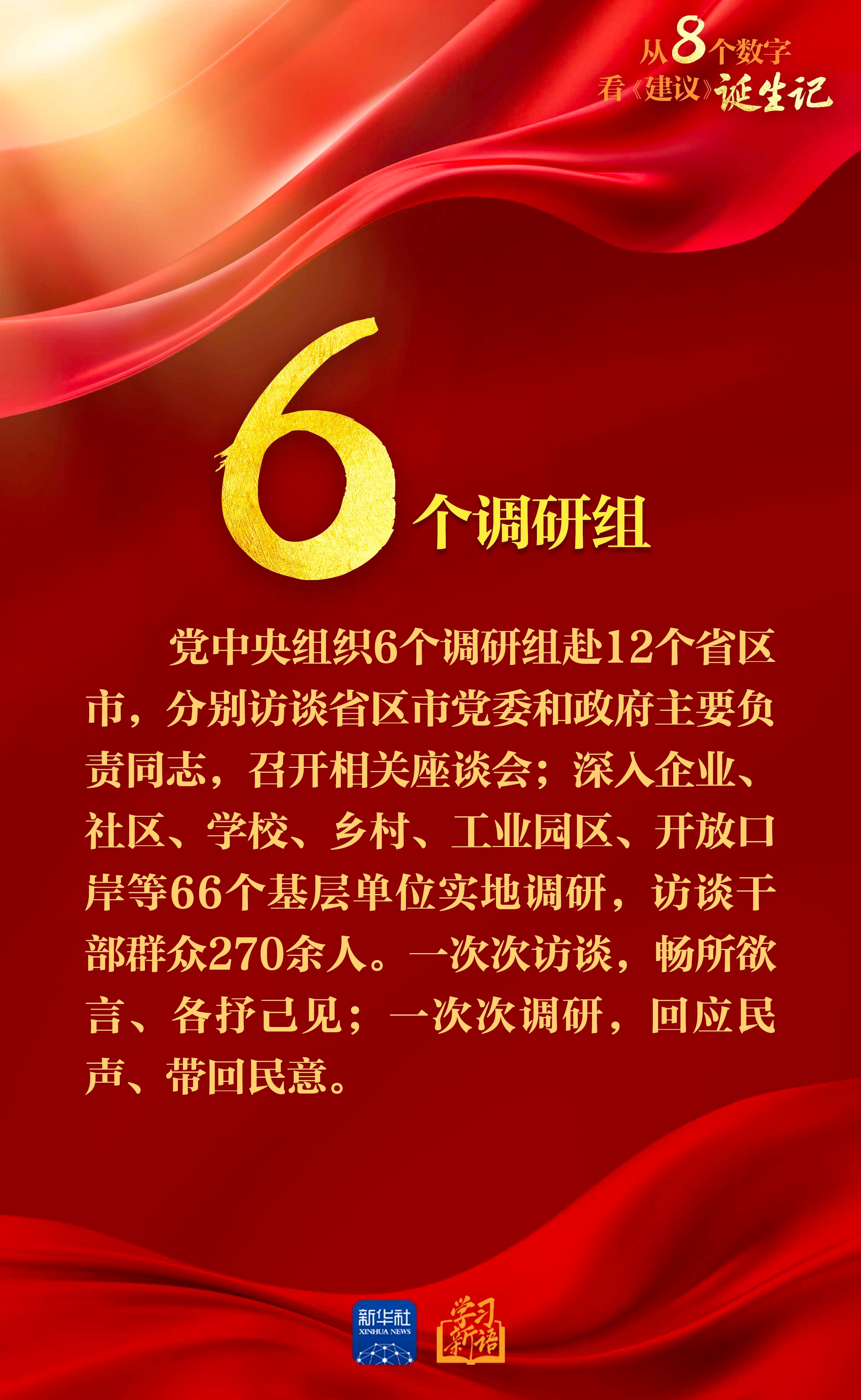 今天,新华社播发通讯《为基本实现社会主义现代化奠定更加坚实的基础——<中共中央关于制定国民经济和社会发展第十五个五年规划的建议>诞生记》。通过一组数字,一起来看这份纲领性文件是如何诞生的。