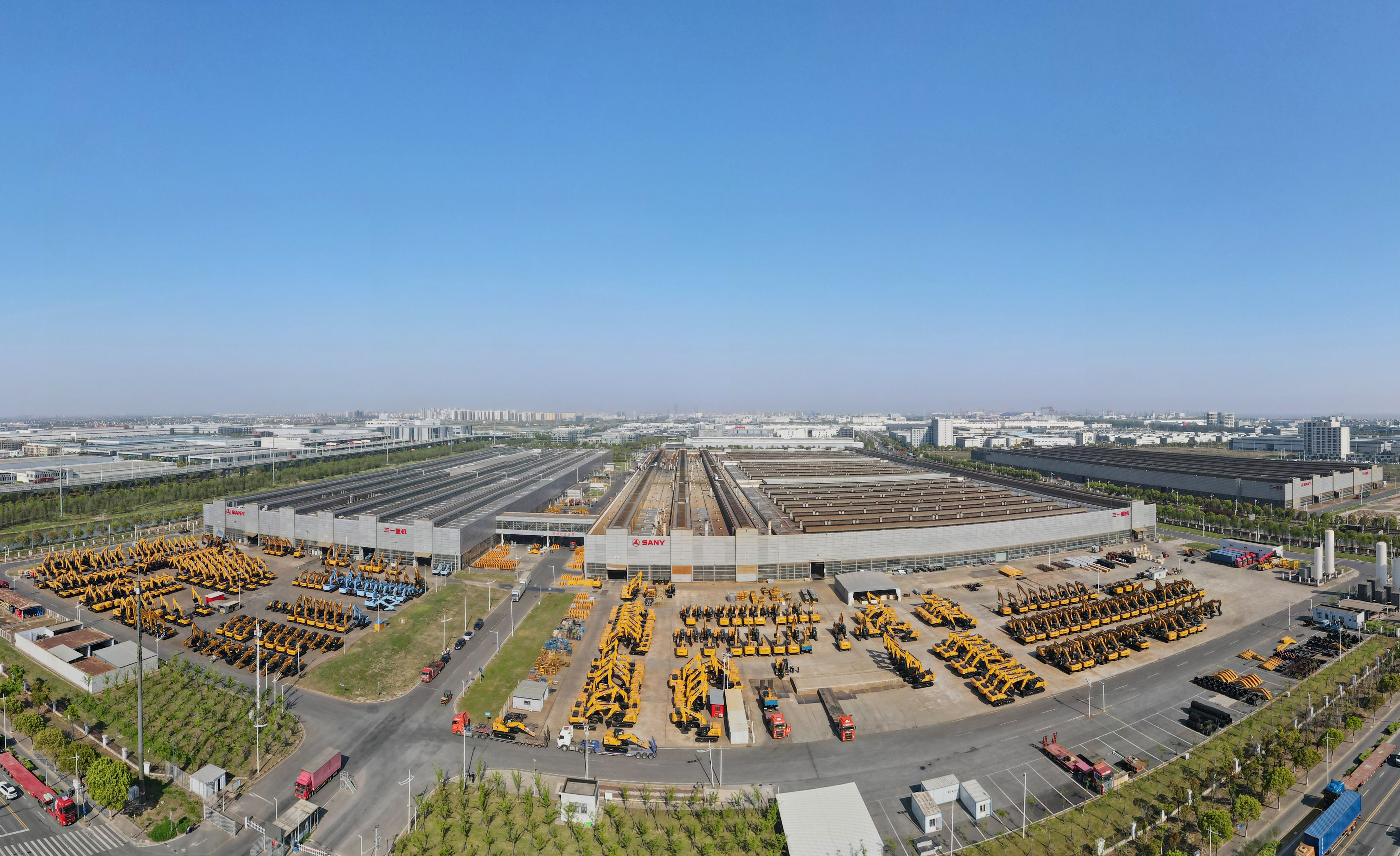 空中俯瞰上海三一重机股份有限公司外景(无人机全景照片,2025年4月15日摄)。新华社记者 方喆 摄