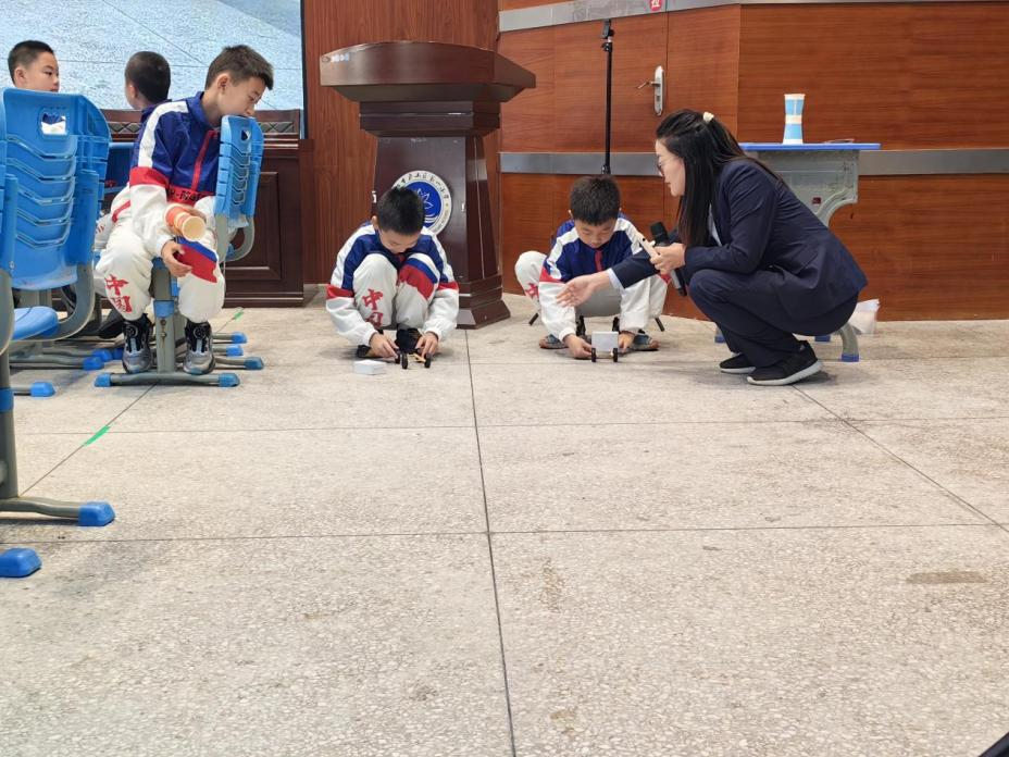 第二节为市九江小学黄玲老师执教的四年级上册《用橡皮筋驱动小车》。黄老师由制作纸杯飞行器入手,通过“设计实验——分组验证——总结规律”的教学环节,让学生在动手组装小车、测试“橡皮筋缠绕圈数与小车行驶距离关系”的过程中,直观感受“力与动”的科学原理,充分体现了“做中学、学中思”的科学教学理念。
