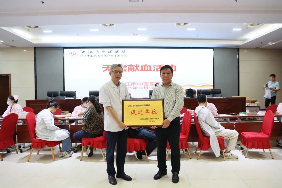九江新闻网讯(钟瑶 周邯微)近日,九江市中医医院被授予2024年度“无偿献血促进奖单位奖”荣誉称号,此次荣誉是对医院多年来认真积极组织无偿献血工作的肯定。