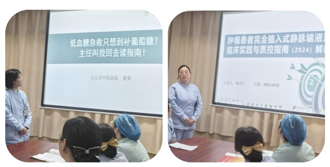 九江新闻网讯(张莉)为提升护理队伍的专业素养与循证实践能力,10月23日,九江市中医医院组织开展主题为“深耕专科,聚力成长”的第三批专科护士读书汇报会。汇报会由大内科护士长张莉主持,肿瘤、糖尿病、心血管、感染、呼吸、社区护理六大专科护士参加。