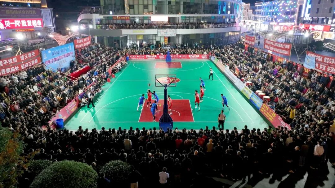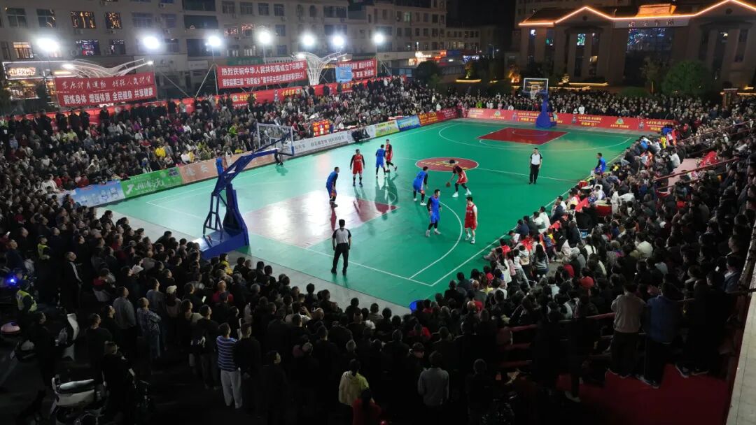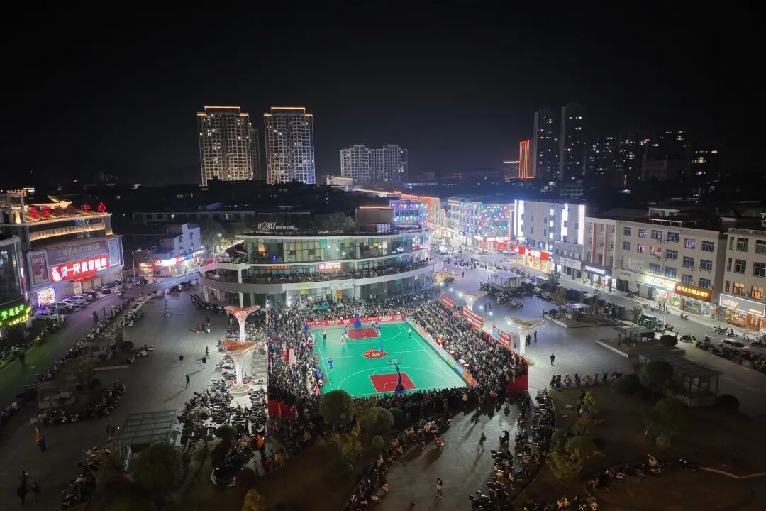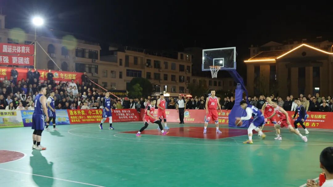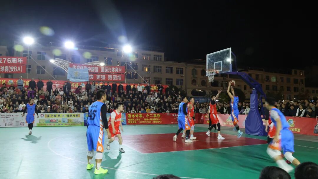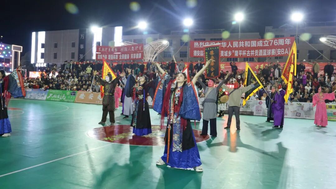夜幕下的篮球场灯火璀璨、人声鼎沸,无数观众早早聚集在此,共同见证本届赛事的巅峰对决。随着主裁判一声哨响,冠军争夺战正式开始,中寰集团队与教体局队强势交锋,双方你来我往、比分胶着,每一次进球都将现场气氛推向高潮。比赛间隙,《千里江山图》《德安潘公戏》《楚歌战鼓》等文艺节目轮番上演,将体育竞技与传统文化巧妙融合,现场掌声与喝彩声此起彼伏。