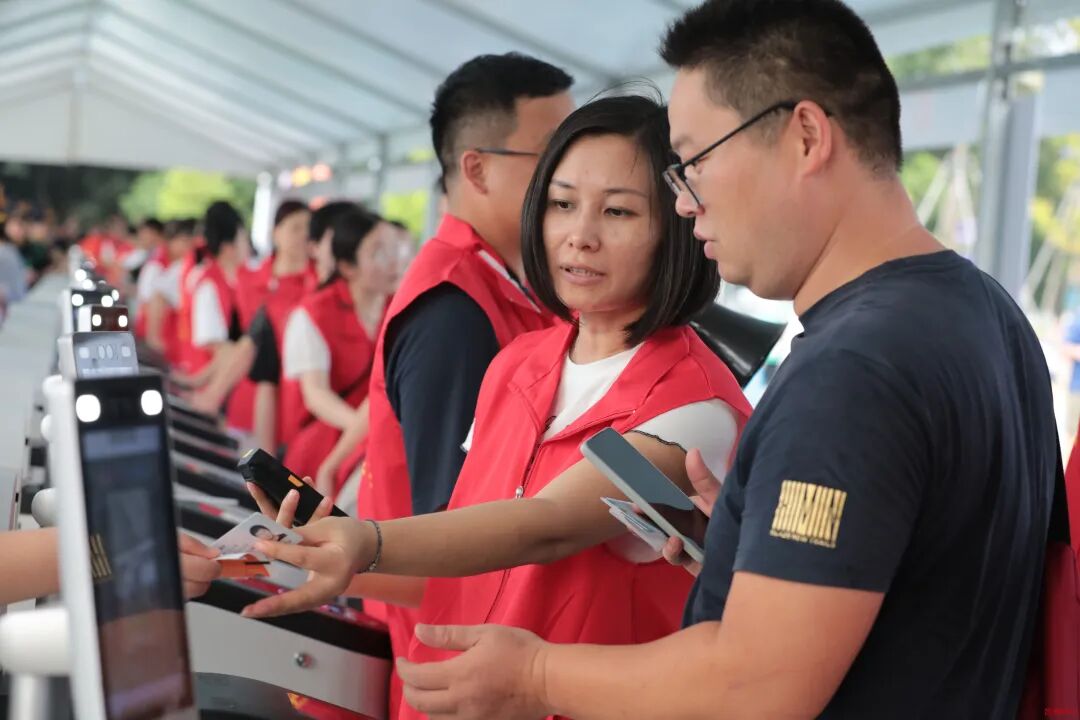 7月26日晚,九江队的首场主场比赛于九江市体育中心激情上演。当天15时,九江市体育中心南北门共52台闸机旁,来自中心(集团)的90余名党员干部组成的党员突击队,全员投入到赛事服务保障一线。从那一刻起,每一场九江队的主场比赛,这支队伍都坚守岗位,在场外承担检票、动线引导与秩序维护等工作,确保每一位球迷安全、有序、高效入场,累计服务观众超10万人次。