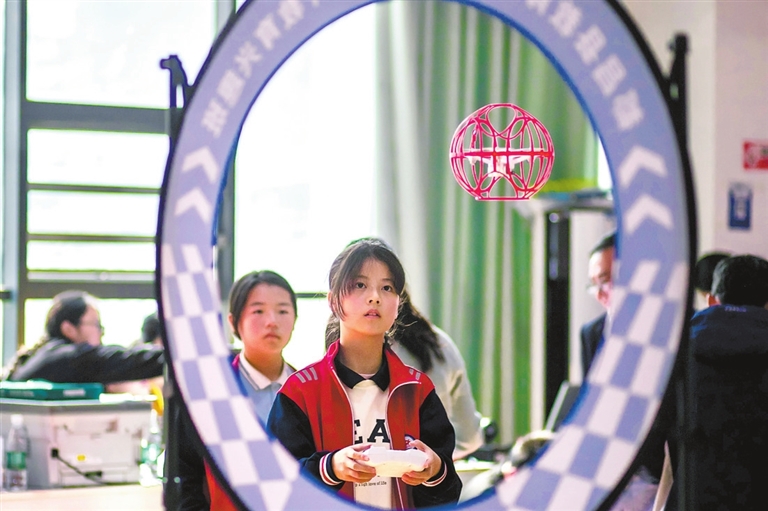 日前,都昌县第三届学生信息素养提升比赛在该县第五小学举行,来自该县28所学校的356名学生参加了无人机第三视角竞速赛、无人机足球赛、个人打靶飞行赛、编程任务赛等项目比赛,让孩子们在探索中体验科技活动的乐趣,为培养未来航空强国所需的高素质人才夯实基础。(尹志 罗翔宇 九江日报全媒记者 程鹏 摄)