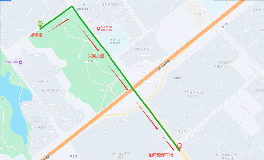 (2)开往火车站方向为:怡庐苑停车场--安康路--九园路--祥和路--思德路--兴城大道--……火车站。增加站点:怡庐苑停车场(怡庐苑)、怡庐苑南门、九龙新城B区。