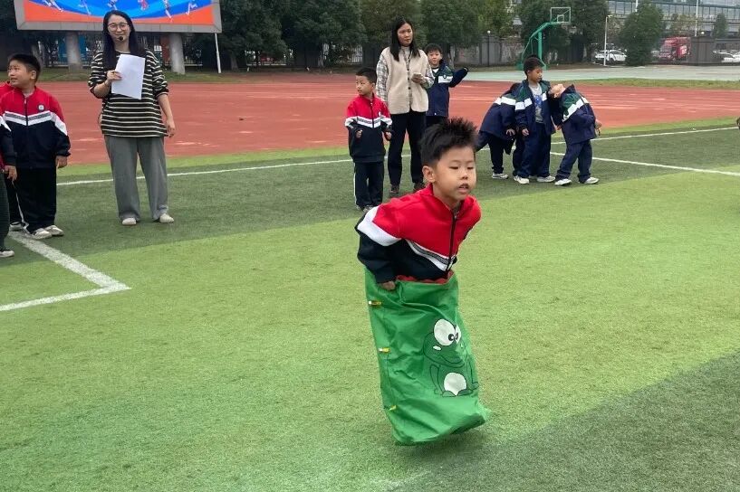 紧接着,一场独具特色的趣味运动会在校园里拉开帷幕。一二年级的小朋友们化身活力满满的运动小达人,在 “背后传球”“赶小猪”“袋鼠蹦蹦蹦”“螃蟹暴走” 等趣味盎然的项目中尽情撒欢。他们灵动的身影穿梭在赛场,欢声笑语与加油声交织,将青春活力尽情释放。