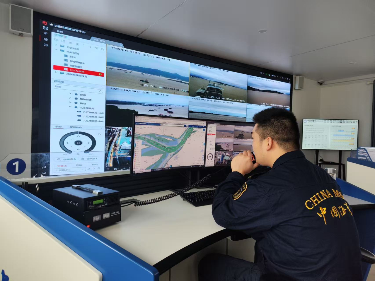 该海事处智管应急中心首先聚焦重点水域,在张南浅区、八里江风浪区、长江鄱阳湖交汇区、永和洲锚泊区增加巡航频次,其次充分发挥微卡口智能监控系统“千里眼”作用,对重点船舶不间断实景监管,密切掌握重点船舶航行动态。同时通过智管平台高频次点验重点水域船舶,对未按规定航路行驶、未保持安全航速等违章行为做到“早发现、早干预”,确保重点水域通航秩序良好。尤其是在干支流交汇水域,针对长江-鄱阳湖交汇口水域通航特点,全面强化交通秩序管理,管控进出湖船舶严格按环岛航法行驶,同时加强“江湖两色”旅游客船专项管理,夯实安全基础。