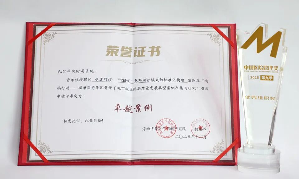 此次参会与获奖是对医院管理水平、创新能力及党建引领成效的充分肯定。医院将以“健康为中心”,不断提升医疗技术水平,加强医院精细化管理,以科技创新带动医院提质增效,为推进健康中国建设贡献力量。(九江学院附属医院供稿)