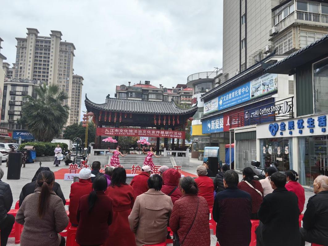 九江新闻网讯 为进一步推动法治理念在基层落地生根,丰富社区居民的精神文化生活,2025年11月17日,濂溪区十里街道赣北商城社区联合九江市文化广电旅游局、九江市文化馆在德化戏台举办“法治基层行”活动。活动通过法治宣传与文艺演出相结合的形式,让法治理念融入百姓生活,营造了尊法、学法、守法、用法的良好社会氛围。