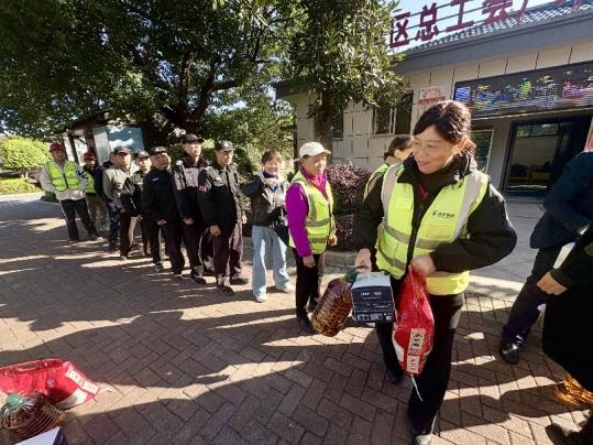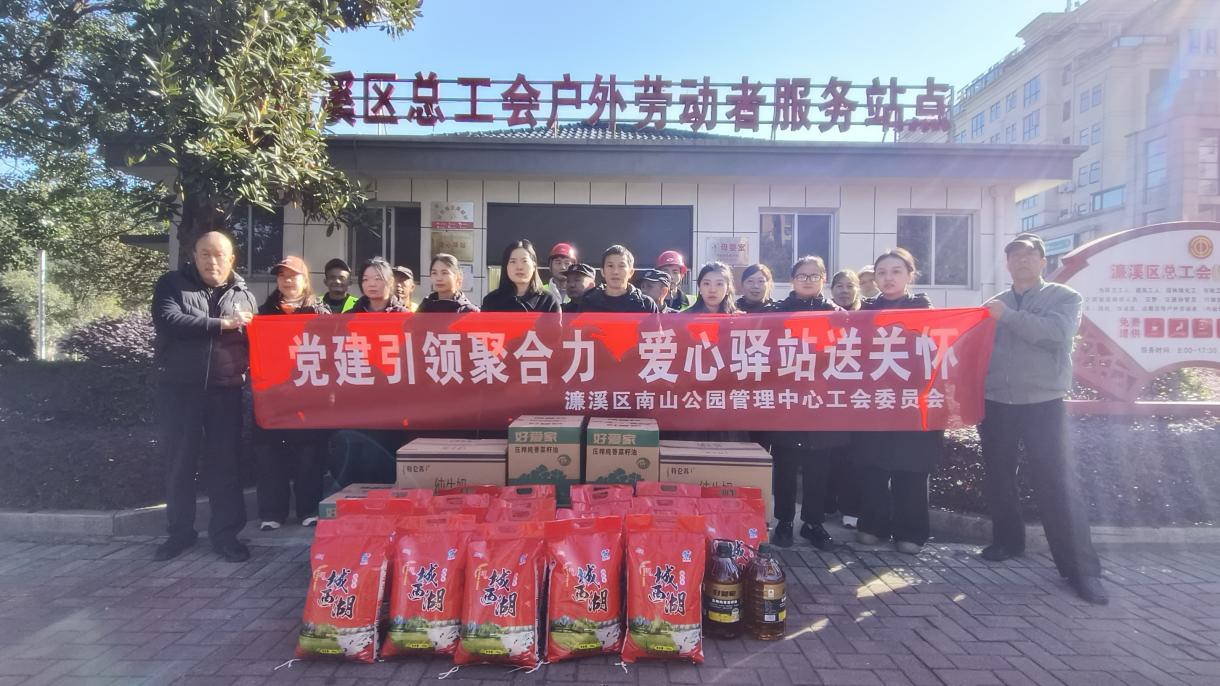 九江新闻网讯(江婷)11月19日,濂溪区南山公园管理中心以“党建引领聚合力,爱心驿站送关怀”为主题,组织开展冬日送温暖慰问活动,为建筑工人、保安保洁、园林绿化人员等户外及新业态劳动者送上大米、食用油、牛奶等慰问品,以实际行动传递党组织对一线劳动者的关爱与尊重。