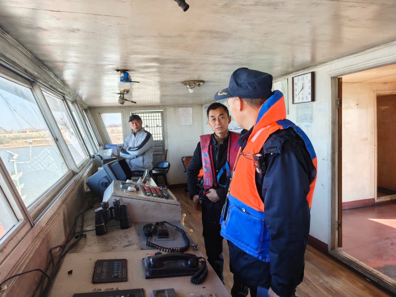 执法人员登上施工船舶后,首先对船舶的航行设备、通信设备等进行了全面检查,确保各项设备运行正常。随后,执法人员结合九江水道南槽水域特点和施工船舶作业实际,围绕“防碰撞、防搁浅、防群死群伤和禁止违章航行”四个方面向船员们进行了深入细致的安全知识讲解。