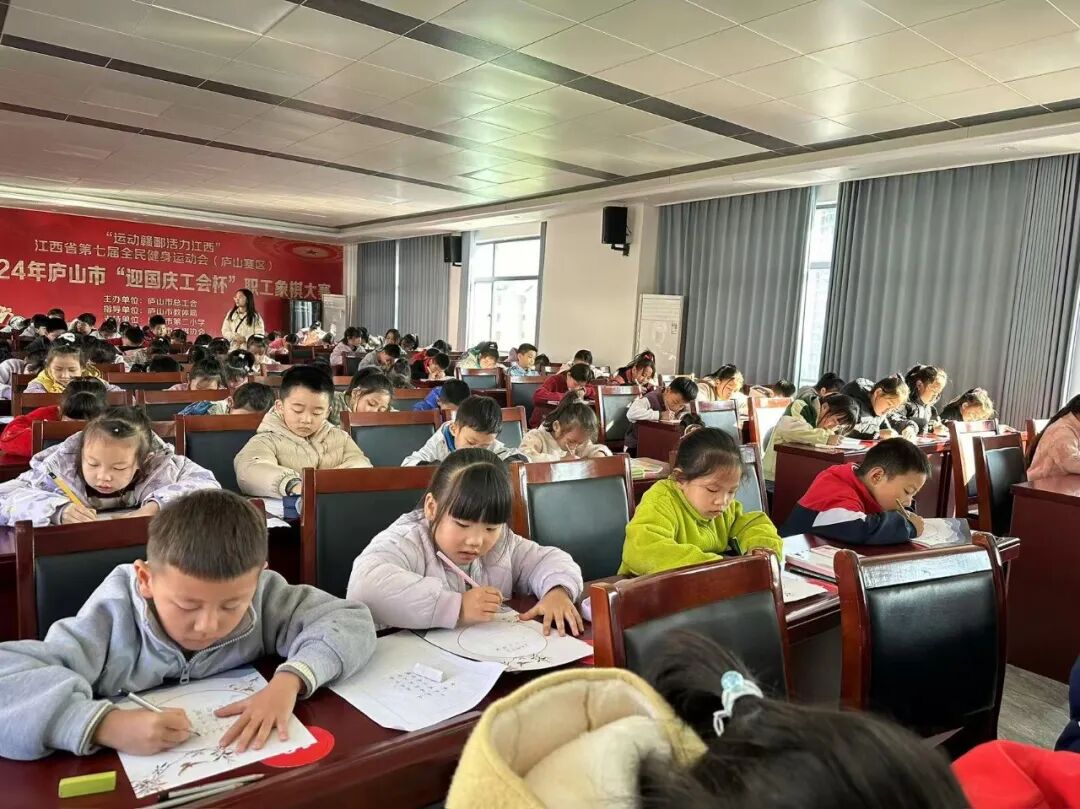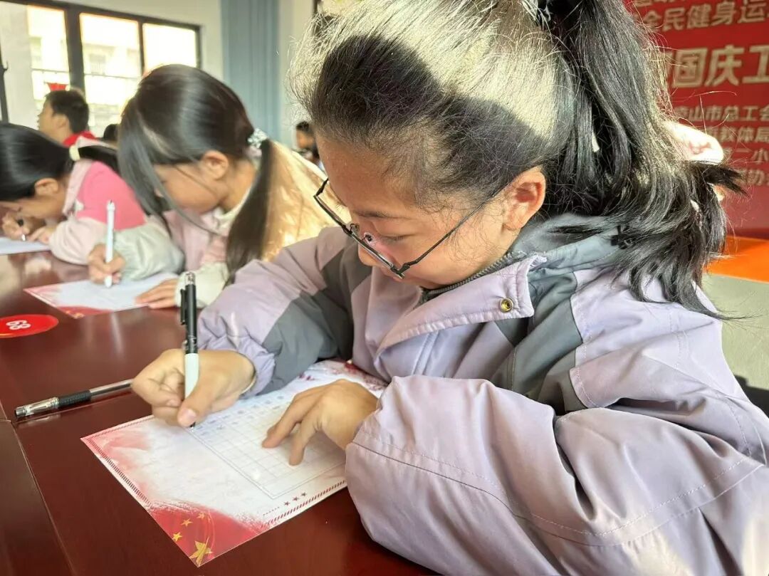 比赛现场设在三楼大会议室,气氛庄重而热烈。各年级的书法小能手们齐聚一堂,屏息凝神,专注书写。他们坐姿端正,握笔规范,用心书写每一个笔画、每一个汉字。