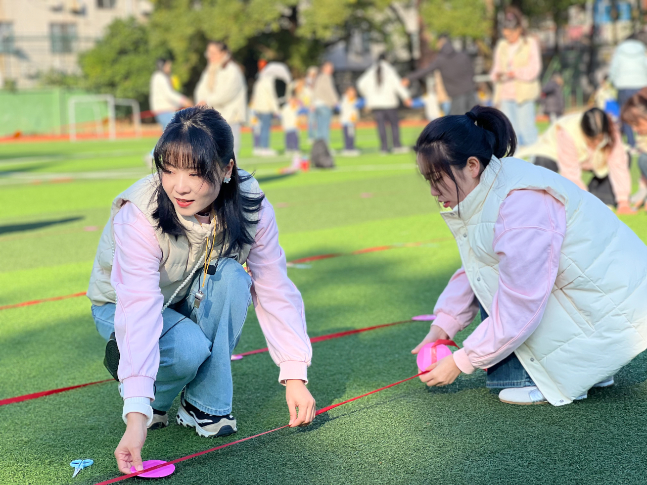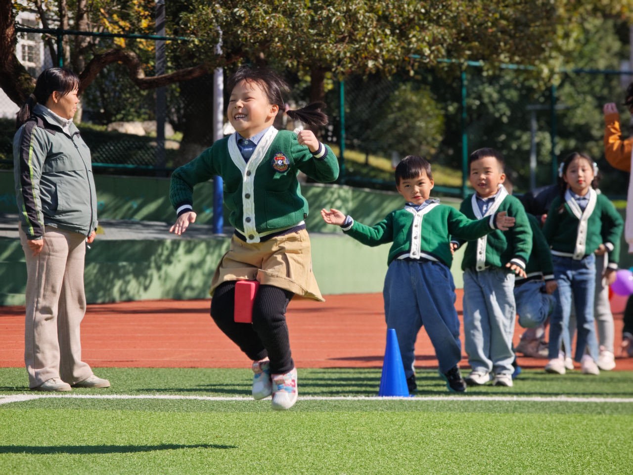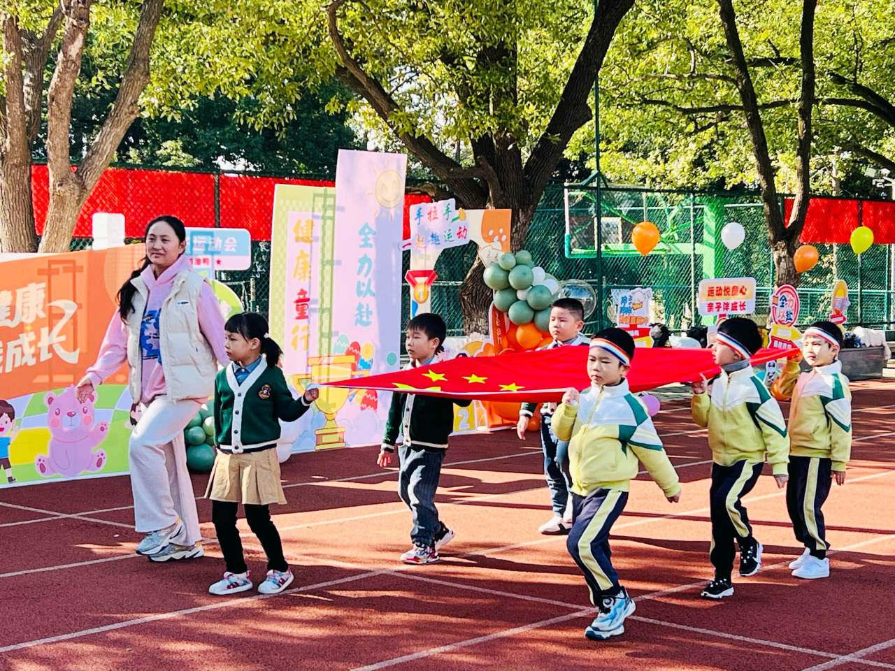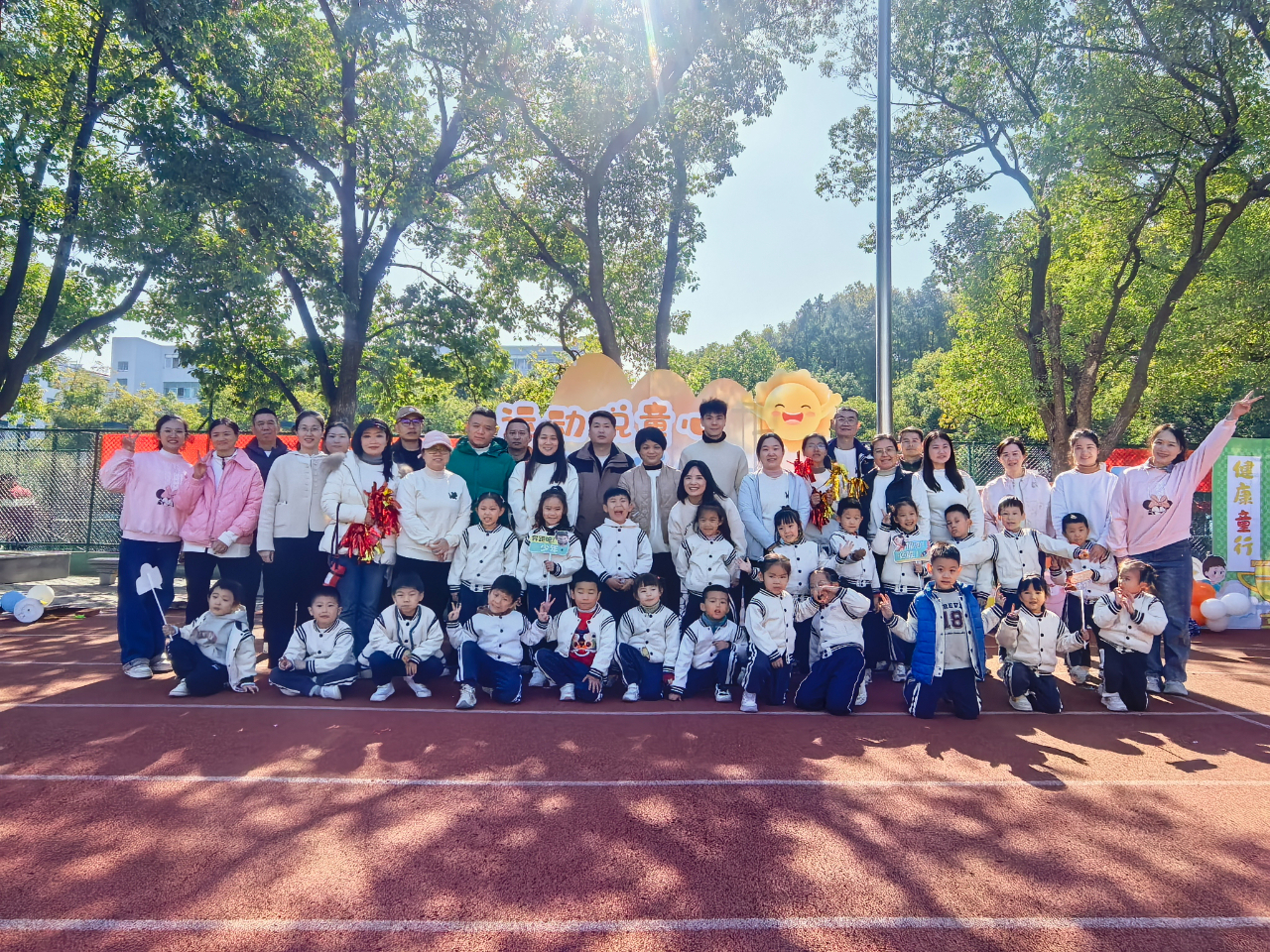 冬日的阳光温柔和煦,老师们提前忙碌起来,精心布置赛道、摆放趣味运动道具,细致入微地做好准备工作。孩子们牵着家长的手陆续到场有序集结,脸上满是期待与兴奋。随着主持人活力满满地开场,运动会正式拉开帷幕。