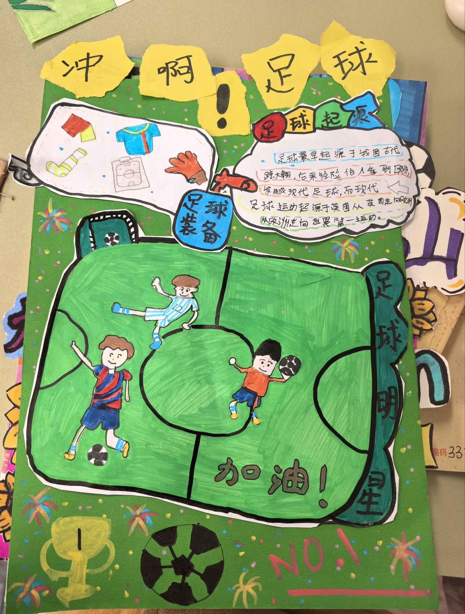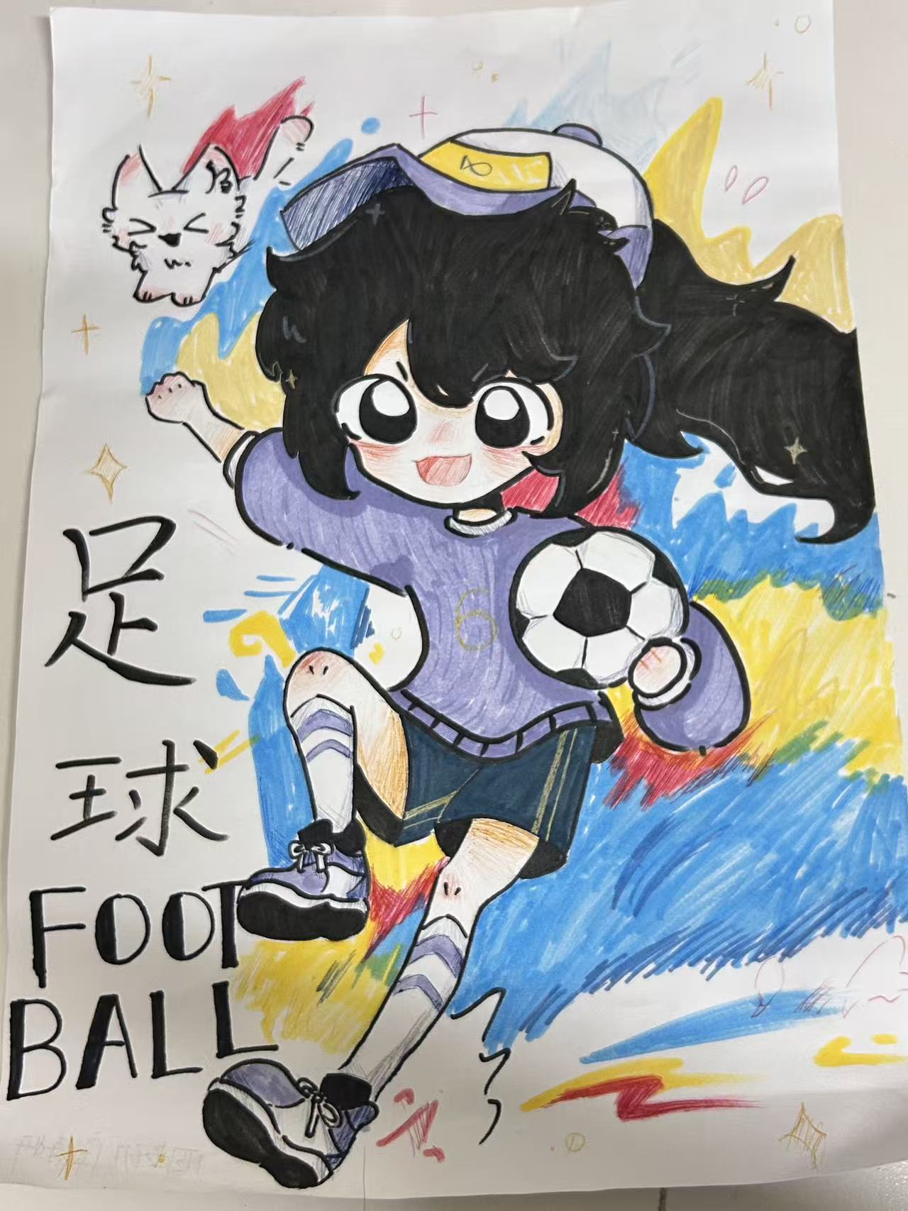 除竞赛环节外,足球文化活动同样人气高涨。师生们通过足球手抄报、足球小制作、主题征文以及摄影活动,将艺术创作与体育强身相融合。无论参赛队员还是普通师生均参与到此次文化节活动中,整个校园散发着浓厚的足球文化气息。充分体现了“全员发展、全面提升”的实践育人思路。