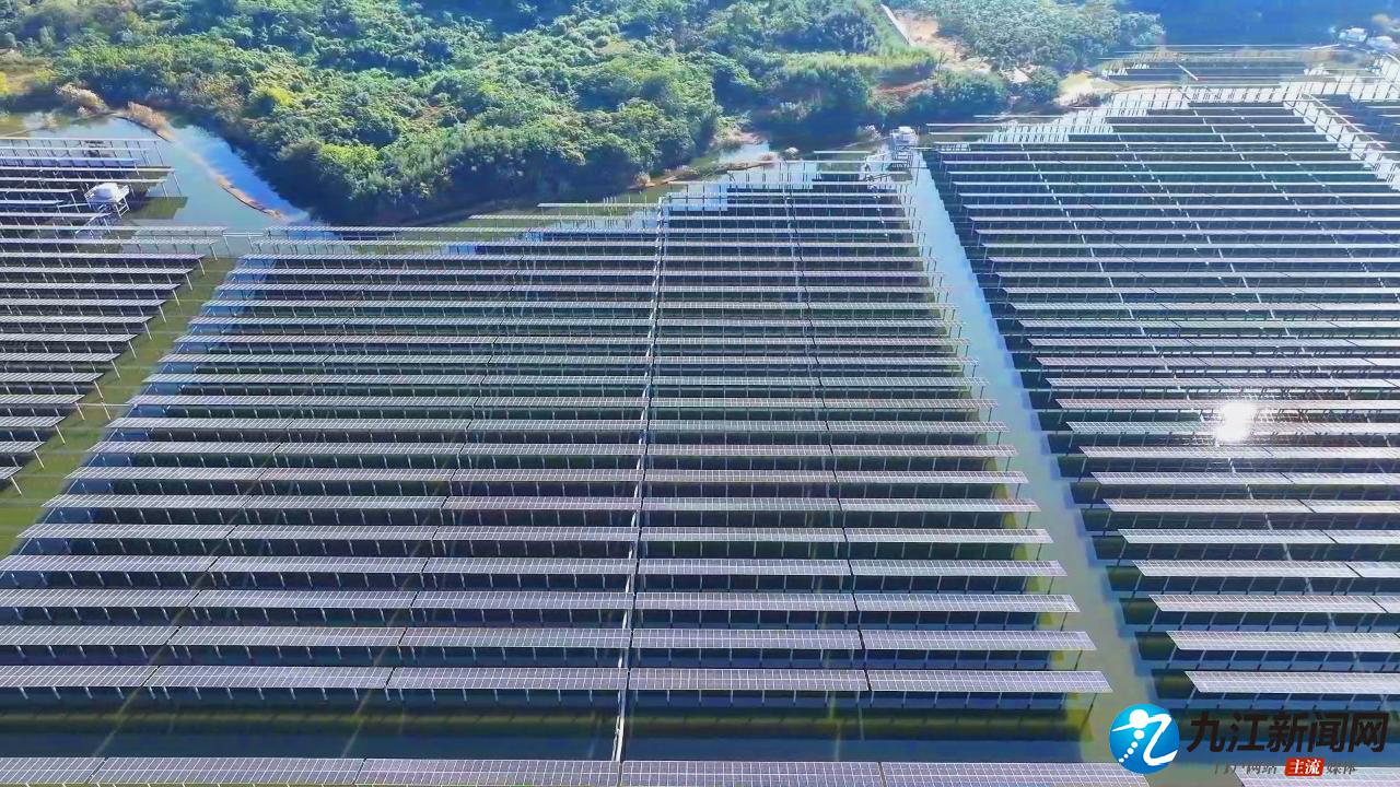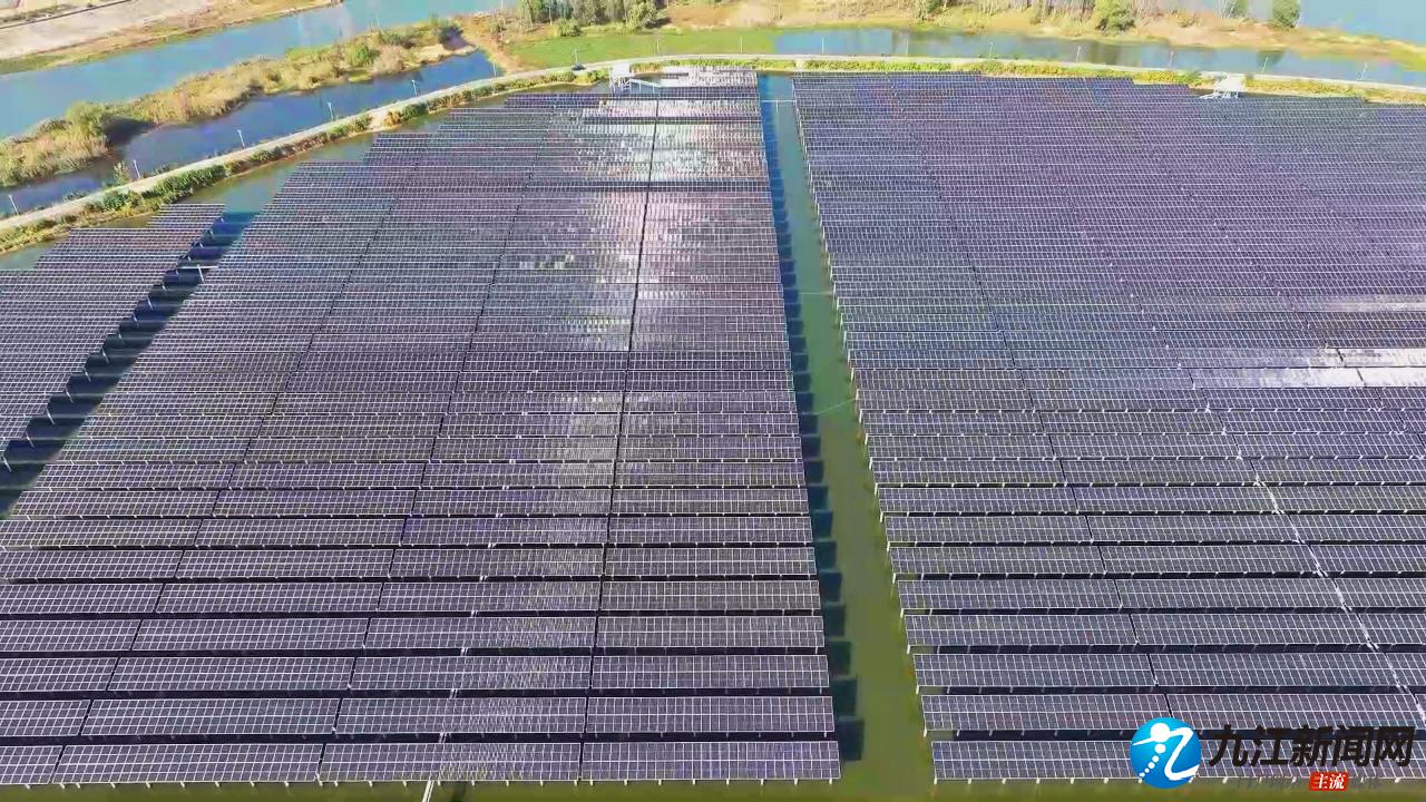 柴桑区新塘乡紫荆村,一幅“渔光互补”的生态画卷正在麦西湖上展开。建有102兆瓦的光伏电站通过水上架设光伏板发电,水下开展生态养殖,形成“上可发电、下能养鱼”的立体模式,为乡村振兴注入了持续的绿色动力,实现了生态保护与经济发展的双赢。(桂孝树 九江日报全媒记者 洪显智 摄)
